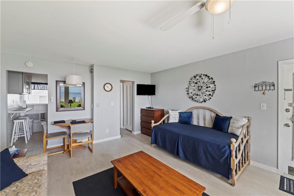 Enjoy living where people vacation. This charming sunlit fully furnished beachside ocean view studio is ready for its new owners. Located on beautiful Hollywood Beach and minutes from the Board Walk where you can enjoy restaurants and nightlife. The unit features updated floors, paint, kitchen cabinets, quartz countertops, appliances and A/C. This is a first floor unit in a quiet building where you can relax and enjoy. No Rentals first 2 years of ownership.