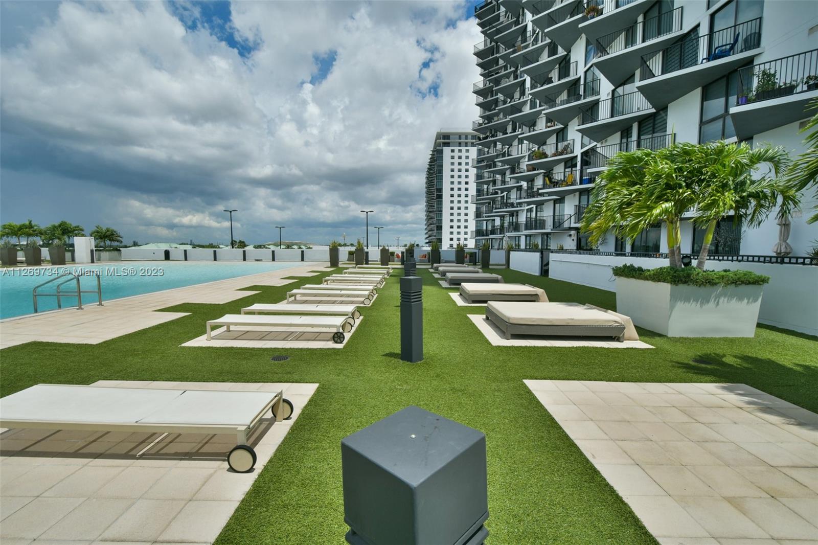Enjoy the wonderful lifestyle at Downtown Doral with this beautiful 3 Beds, 2 Baths unit, located in the 3rd floor. The apartment has direct access to the swimming pool, located in the corner of the building, which provides with the largest and most specious outdoor Terrace with a privileged view. The unit has a contemporary kitchen & SS appliances, dishwasher, washer and dyer, electric water heater, smoke detector. Impact windows from ceiling to floor, porcelain tiles. This amazing unit also has a private Storage Space under A/C, 2 assigned parking covered spaces and valet parking as well. Include Internet and cable. 24/7 Concierge/Security.Walking distances to the best schools, rest, parks and stores. Amenities including gym, sauna, infinity pool, and big children area for entertainment.
