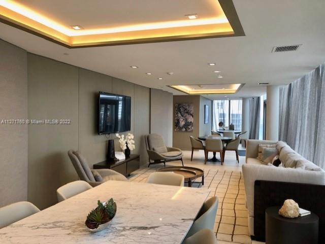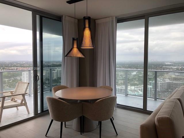 Amazing SE Corner unit with WRAP around balcony that enjoys views of the ocean, intracoastal and city! This unit has a beautiful layout and is turnkey, fully furnished with modern furnishings. All new unit, with brand new luxury kitchen and baths. New blinds and blackouts. Large living space and walk in closet. Resort style living with pool side bar, infinity pool, state of the art fitness center, tennis court, spa, restaurant, lounge area and intracoastal side aquatic center and pool. Location is excellent, across the street from the beach, 7 min to Aventura Mall, close to Hard Rock Casino and much more. Daily rentals are allowed, no rental restrictions!! Easy to show.