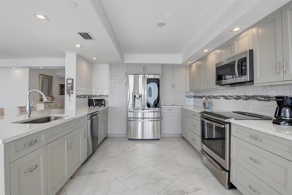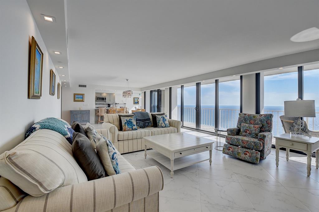 Gorgeous Lower Penthouse Totally Updated 3/2.1 Condo. Direct oceanfront on the ocean. Entire unit renovated wall to wall with the finest finishes. Stunning views from every room. Ocean to sunrise to sunset, intracoastal & beautiful city views. Kitchen, living room opens to the stunning endless ocean views with floor to ceiling sliding impact glass and shutters. Semi private elevator into your unit. Great parking spot. Beautiful lobby, fitness center, game room, club room with kitchen and bar. Oceanfront pool, tennis, and pickleball court. Pool has a lap lane. Doorman at lobby & cameras.
