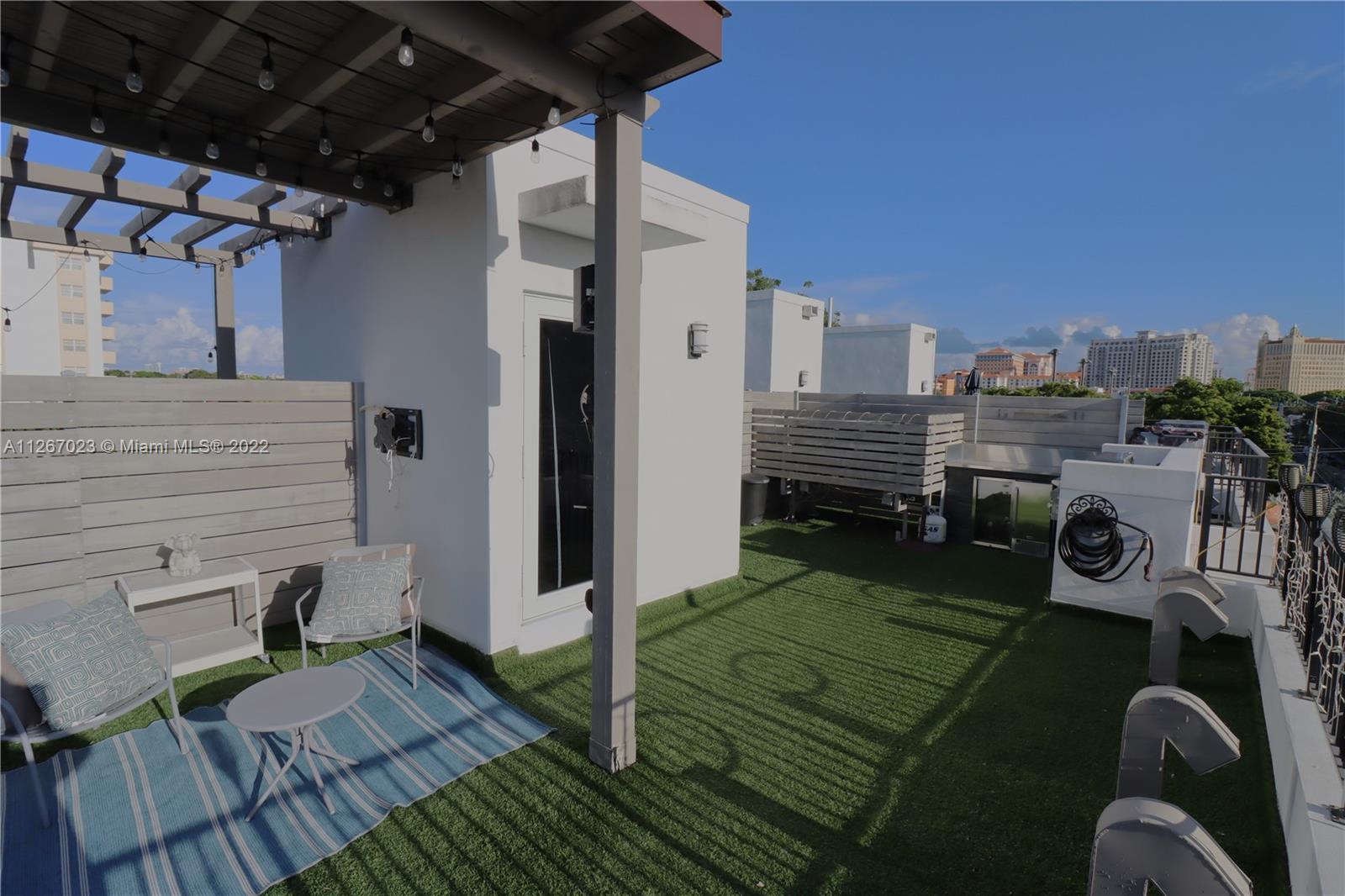 Beautiful corner unit in a boutique building. Condominium is comprised of only 4 units, making this a very private and exclusive property. Incredible rooftop terrace with beverage cooler, ice maker, BBQ and all sorts of entertaining details, as well as unobstructed views Miracle Mile and Coral Gables. Location allows you to walk to many restaurants, shopping options and to Miracle Mile for a night out, or just take the free Gables Trolley. This unit is Truly Great for Entertaining! High End Designer Finishes, Impact Windows and Doors, Glass Railings, electric window treatments and much more. Gated, secured and covered parking for 2 cars and 2 independent storage units.
