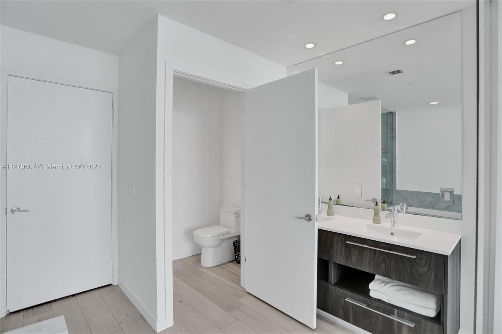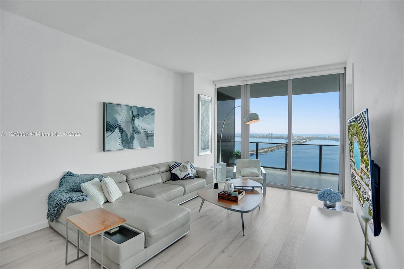 Enjoy breathtaking views from the 46th floor at Gran Paraiso Condo in Edgewater Miami. This spacious condo boasts three full bathrooms, private elevator entry, high impact glass doors, 10' ceilings, porcelain flooring and has the larger, 10' deep balcony that forms part of the facade "bubble". High-end finishes include ItalKraft cabinetry, Sub-Zero + Wolf appliances, top of the line bathroom fixtures and motorized shades in master. Unmatched amenities include a 100' wide resort style pool, tennis courts, bowling alley, fitness center, spa and movie theater just to name a few! Also enjoy the BeachClub & award winning restaurant at Amara by acclaimed chef Michael Schwartz. Located in Edgewater & close to Midtown, the Design District, downtown Miami and M. Beach. (agents see Broker remarks)
