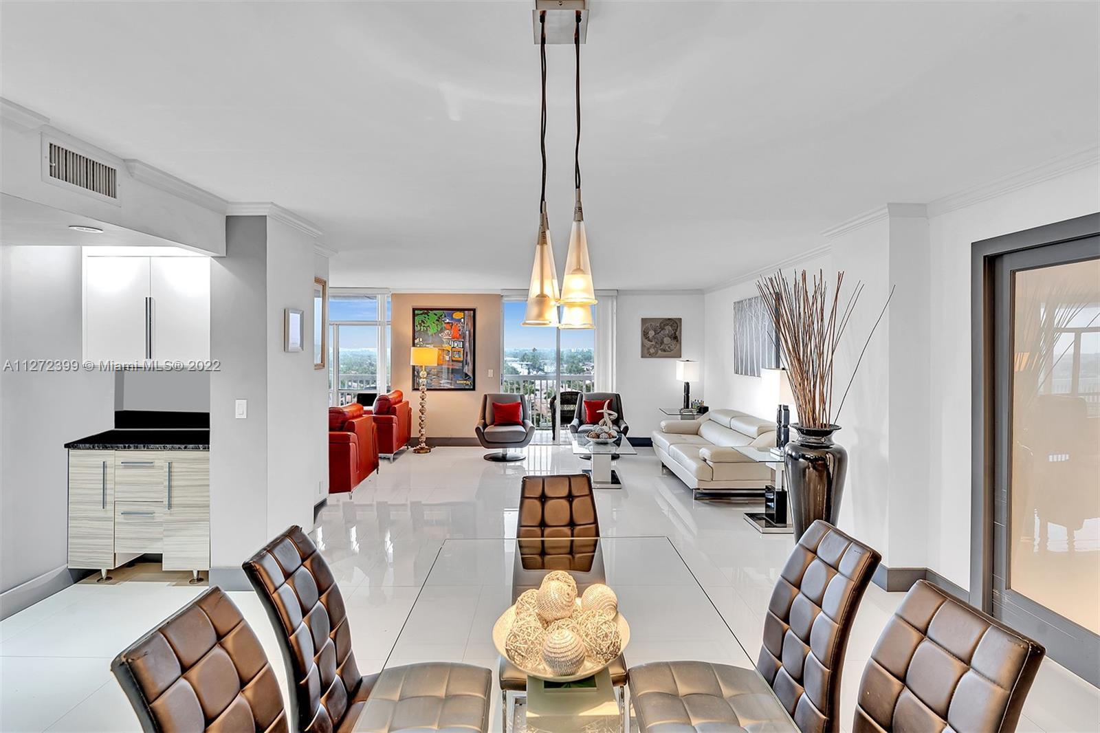 SPECTACULAR INTRACOASTAL & OCEAN VIEWS FROM THE WRAP AROUND BALCONY OF THIS REMODELED 2 BED/2 BATH SPACIOUS UNIT. NEW HURRICANE IMPACT WINDOWS WILL BE INSTALLED BY THE ASSOCIATION AT NO CHARGE. PORCELAIN TILE FLOORING, MODERN KITCHEN FEATURES JENN AIR APPLIANCES, GRANITE COUNTERS W/CONVENIENT COUNTER SEATING. LIVING ROOM IS AN “L” SHAPE DESIGNED TO BE OPEN BUT CAN EASILY BE CLOSED OFF AS THE SECOND BEDROOM. THE PRIMARY BEDROOM IS LARGE W/A BEAUTFUL REMODELED BATHROOM W/HUGE SPA LIKE SHOWER, SEPARATE ENCLOSED TOILET & LARGE WALK IN CLOSET. THE SECOND BATH WELL LOCATED NEAR THE SECOND BEDROOM IS REDONE AND HAS AN OVERSIZED SHOWER W/TWO SHOWER HEADS FOR TOTAL LUXURY. THE UNIT FEATURES MANY CLOSETS & THE BEST PARKING SPOT IN THE BUILDING! ENJOY EXERCISE ROOM, POOL, BILLIARDS, STORAGE, & MORE!