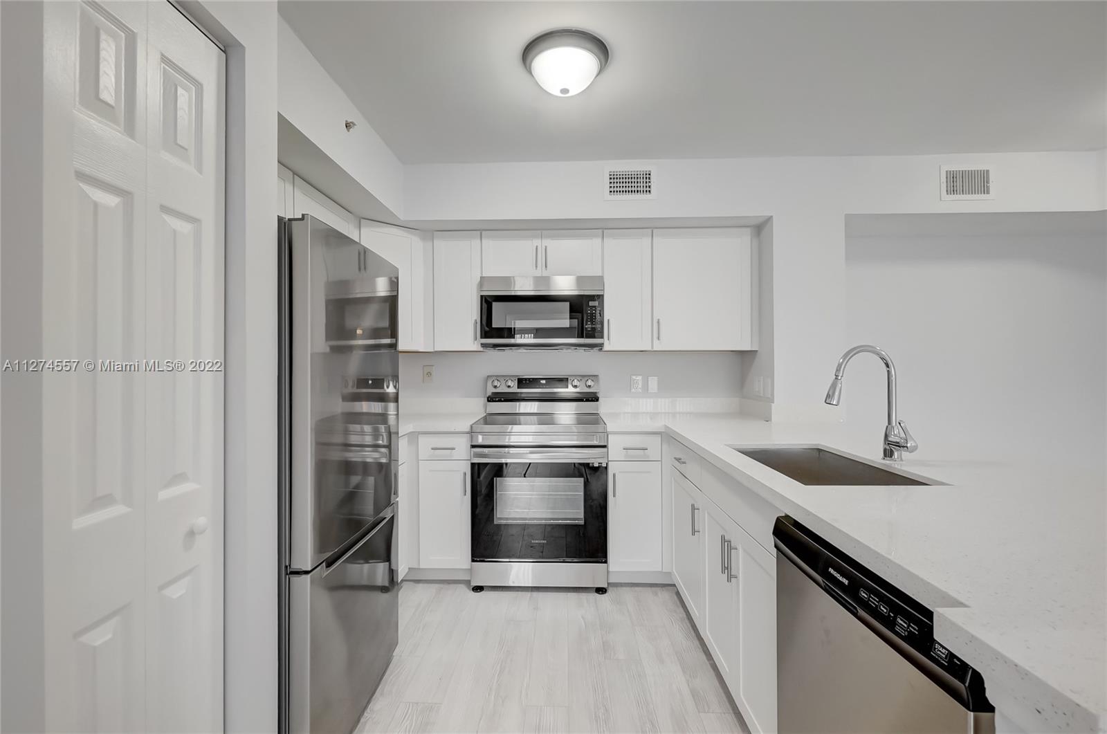 Move-in ready 2 bed/2 bath w/LAKEVIEW, GATED in the heart of Miramar, on 1st FLOOR! (No stairs) CAN RENT OUT RIGHT AWAY or make it your residence. Welcome to your updated, ALL-Ages condo includes: New Premium Waterproof Laminate floors, new interior paint, new Kitchen cabinets, Quartz counter tops w/extended Quartz for stool seating, new S.S appl, no popcorn, new baseboards, 2 Marble Vanities, Master w/his/hers closets, porcelain tile in 2 bathrooms, washer & dryer in unit, Patio, Hurricane Shutters, Newer A/C, 2019 Rheem water heater. Plenty of guest parking & assigned parking. Great community! Assoc has partial reserves. Community offers clubhouse, gym, pool, spa, hot tub, volley ball, tennis, racquetball club court, playground, "A-RATED" School district for High School. Requires 20%.