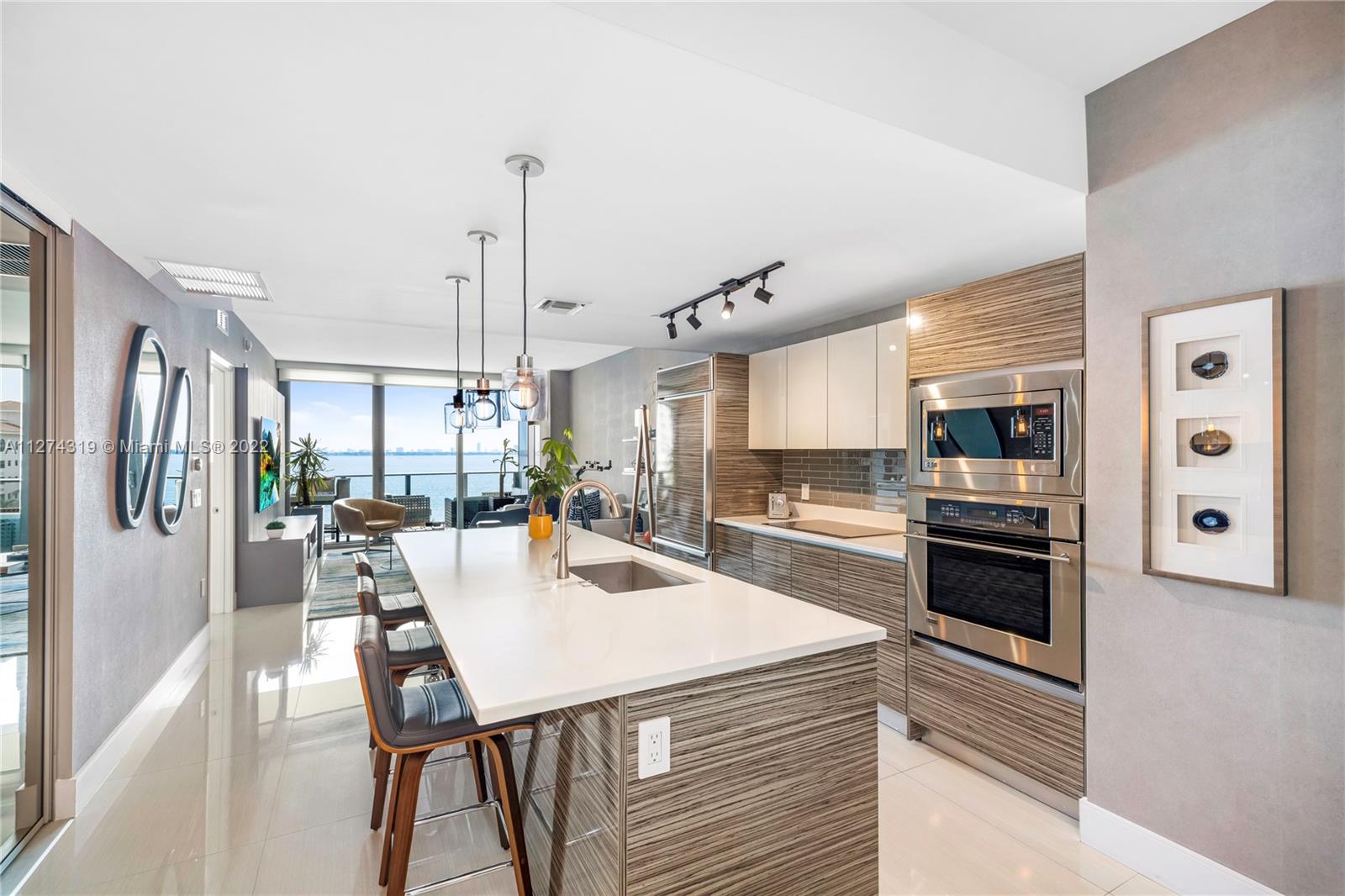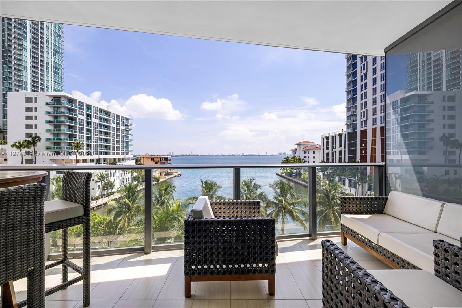 A FULLY FURNISHED AND PROFESSIONALLY DECORATED TURNKEY APARTMENT, with amazing Bay views! READY to move in 2 Bedroom + Large Den (best line of the building) this unit is a waterfront residence with modern ample layout, a private elevator and beautiful Italian design kitchen. Stainless steel appliances, beautiful porcelain tile flooring throughout, custom closets, custom roller shades (ELECTRIC BLINDS). Located in Edgewater, a new place-to-be in Miami, with easy access to Downtown, Midtown, Wynwood, Design District, I-95 and Miami Beach. A 5-star Luxury building that features state of the art amenities such as fitness center, screening room, billiard & social rooms, designer pool deck, tennis courts and spa. Easy to show!