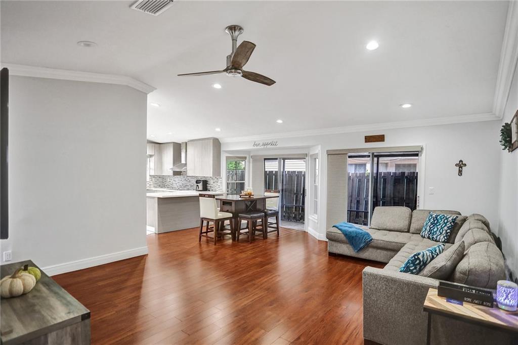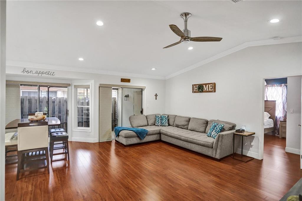 MAGAZINE BEAUTIFUL! ALL YOUR DREAMS WITHIN YOUR MEANS! BRAND NEW ROOF BEING INSTALLED AT THIS TIME! This home as a million dollar look at a reasonable price! Enter the great room with vaulted ceilings and experience the WOW factor! Beautiful laminate flooring, lots of windows overlooking the patio. The kitchen is a masterpiece by any standard! Amazing 42" cabinets, lots of designor counter top and backsplash. Upgraded stainless steel appliances. Washer and dryer have a convenient nook here! Split bedroom plan, remodeled bathrooms, today's soft colors. Master bedroom has walk in closet, spacious bathroom with matching cabinets with the kitchen. Just bring your furnishings! Screened patio is large and perfect for table and play area. Low HOA fees. Garage plus two spaces. HURRY!