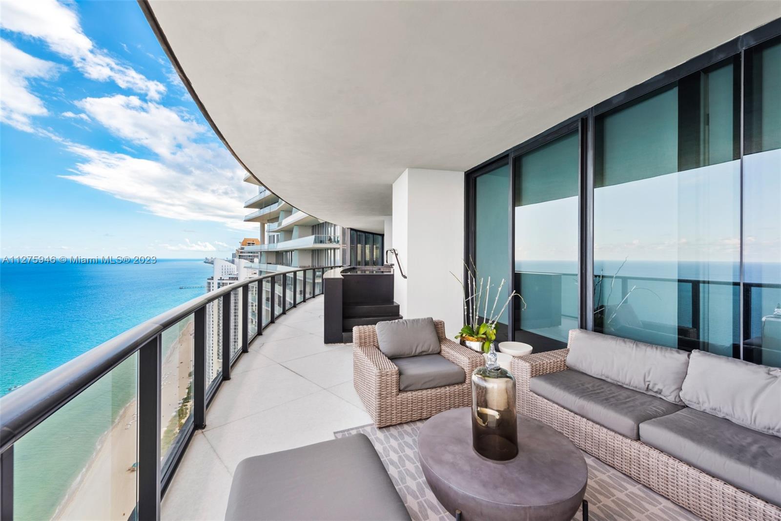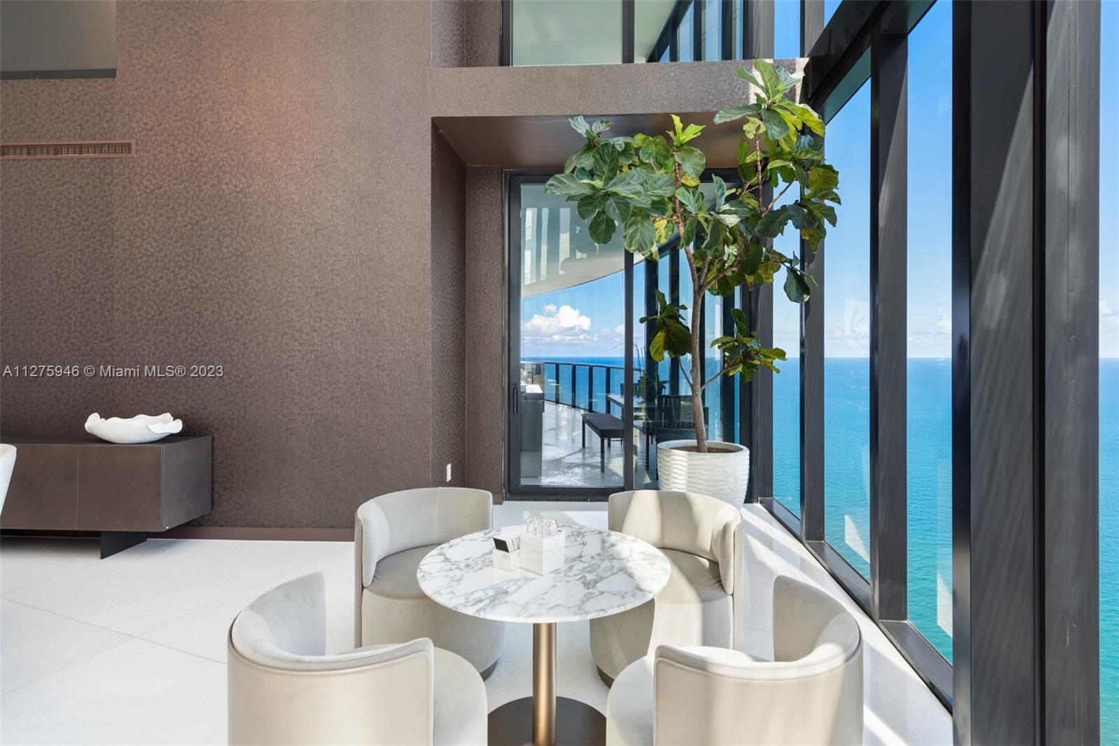 This is the last lower PH, a true high-end oceanfront residence, ( Double level floor plan with 22 foot windows in the living room ) 48x48 Italian marble floors flow throughout, two spectaculars master suites,2 impresive terraces equipped with a ultra modern pool, summer kitchen, lounging area as well a enclose terrace for a beautiful breakfast or a romantic dinner. One of the few units with 4 car garage and a private elevator inside the unit, private beach club for residents only, beautiful sunset pool, building amenities: Movie theater, private restaurant, state of the art gym, VRX motion Z-55 racing simulator.