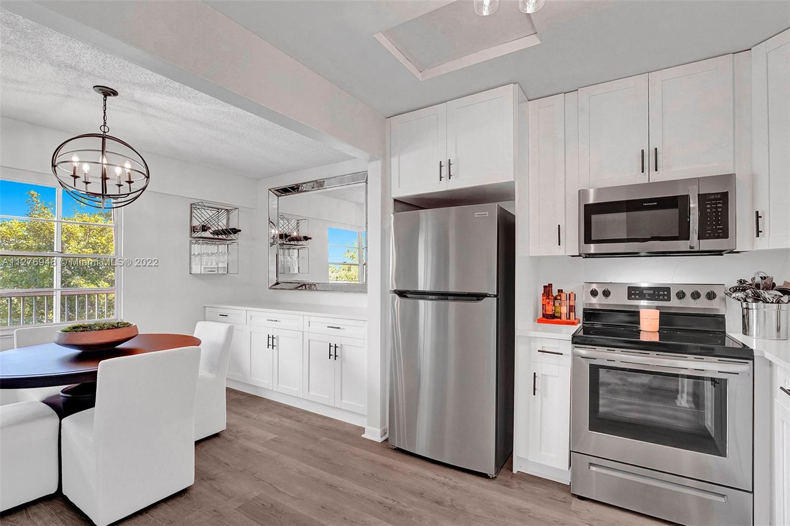 Want to move to Century Village & a new home the DOES NOT require thousands of dollars$$$ in renovations? Completely remodeled from head to toe-unique frontdoor of this property is tucked back in it's own private hallway. Once you enter- your stepping into luxury & serenity. Custom kitchen with dreamy white cabinets and stunning quartz counter. Open floorplan in dining room with custom breakfront for entertaining & extra storage. Immaculate bathroom w/custom tub/shower. The master bedroom is the ultimate retreat that has custom closet to keep you organized. Open floorplan allows you to relax in the living room as you look out over gorgeous golf and lakeview situated among large shade trees. Steps to the laundry room and trash chute- did I mention the elevator for the building is NEW?