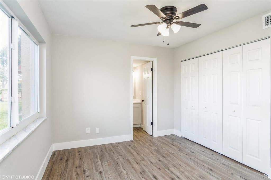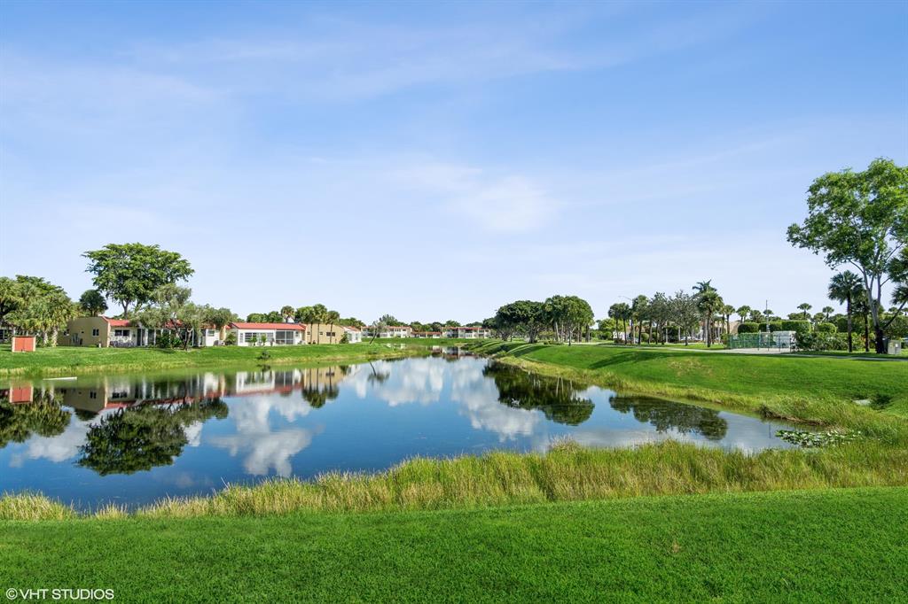 Come see is wonderfully updated 2 bedroom / 2 bathroom unit with one of the nicest lake views in the HOPA Community of Golden Lakes. As you enter, you will notice the smooth ceilings, fresh paint and upgraded LVP flooring. The kitchen has white shaker cabinets, stainless appliances, quartz counters and a subway tile backsplash. Both bathrooms have updated vanities and updated showers featuring subway tile on the walls and flooring. The electrical fixtures have been upgraded and this unit has impact windows throughout and an impact slider. The upgraded baseboards really finish it off. The back patio is perfect for sipping your morning coffee or reading a book while taking in that gorgeous lake view. Golden Lakes is a gated community that is conveniently located & features many amenities!