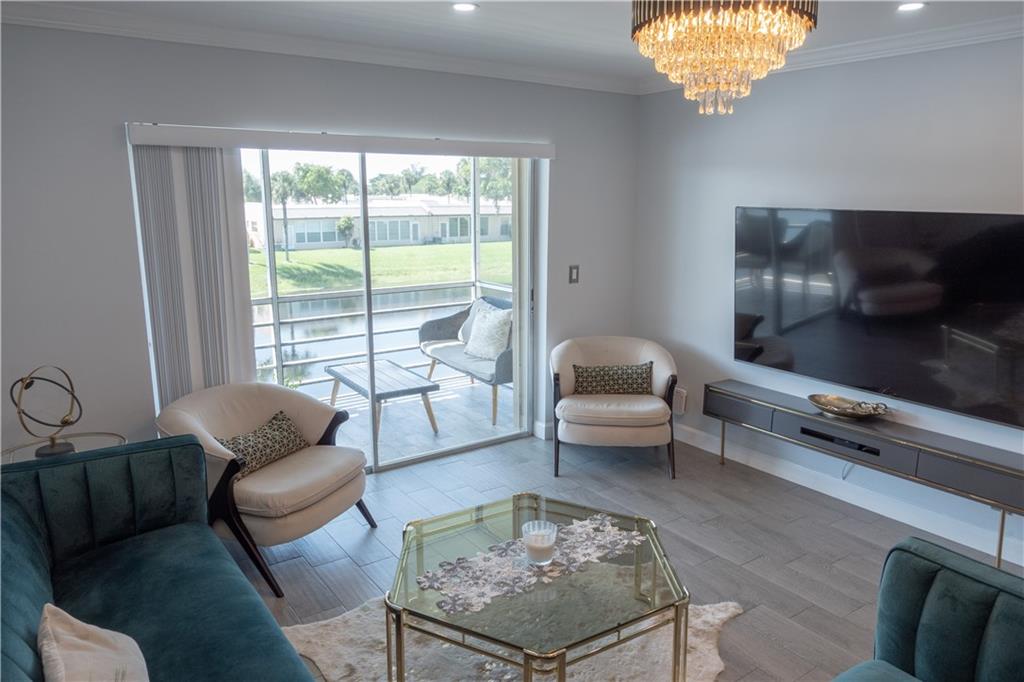 You don't want to miss this gorgeous completely renovated 2/2 condo that is move-in ready and overlooks the lake! Everything was recently updated & painted, no popcorn ceiling here. Kitchen features beautiful white cabinets & granite countertops, newer stainless steel appliances & LED lights. Both bathrooms completely redone from top to bottom. Wood look plank tile floors throughout & views from every room! No detail was overlooked. Walk-in closet, crown molding & more! Newer All-In-One Washer/Dryer in unit. Enjoy a nice evening on the enclosed patio & accordion shutters for hurricane protection. A/C Newer, WH 2014. Golden Lakes offers a wonderful clubhouse, large pool, spa, tennis, shuffleboard & more for active seniors. Bus service to shopping & medical plazas. Hurry before it is gone!