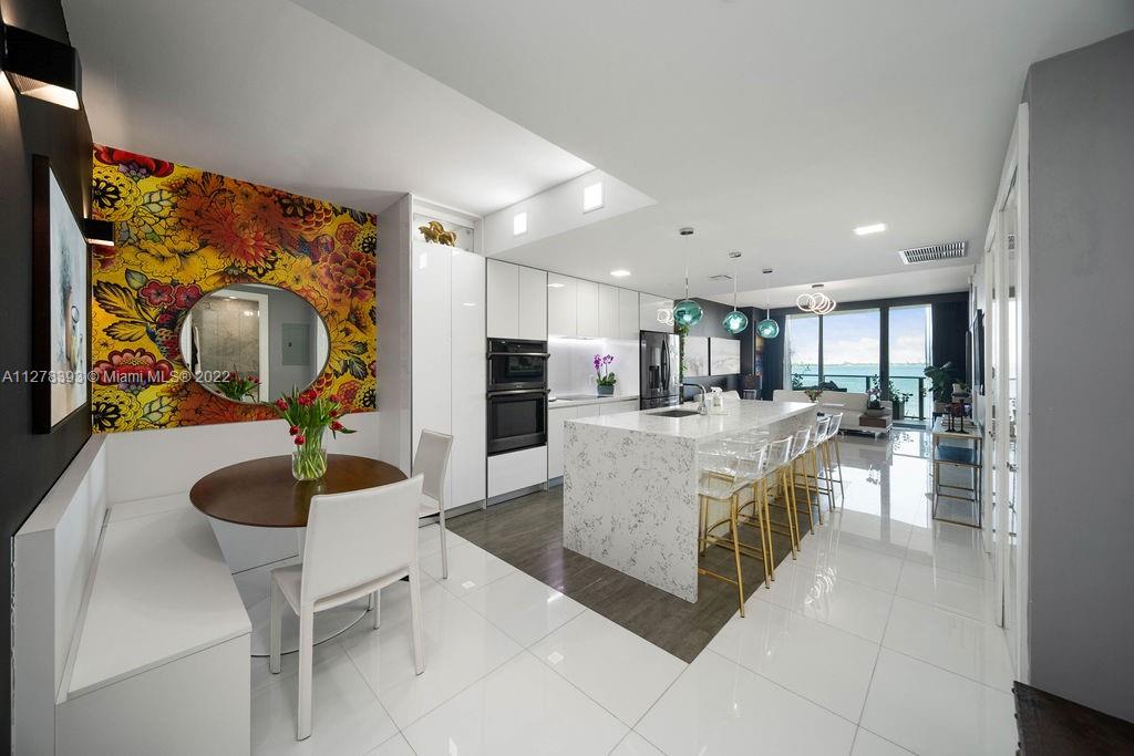 Spectacular direct bay views from this 2 bedroom, 2 bath condo. Unit has customized pieces, italian porcelanato and UPGRADED KITCHEN. This condo provides a private elevator and foyer, and 2 PARKING SPACES in the attached garage. State of the art building amenities include a gym, sauna, pool, tennis court, theater room, sky lounge, valet parking, and a club room. The building is conveniently located in the quiet area of Edgewater and close to the Design District, Midtown, Wynwood, and Downtown.