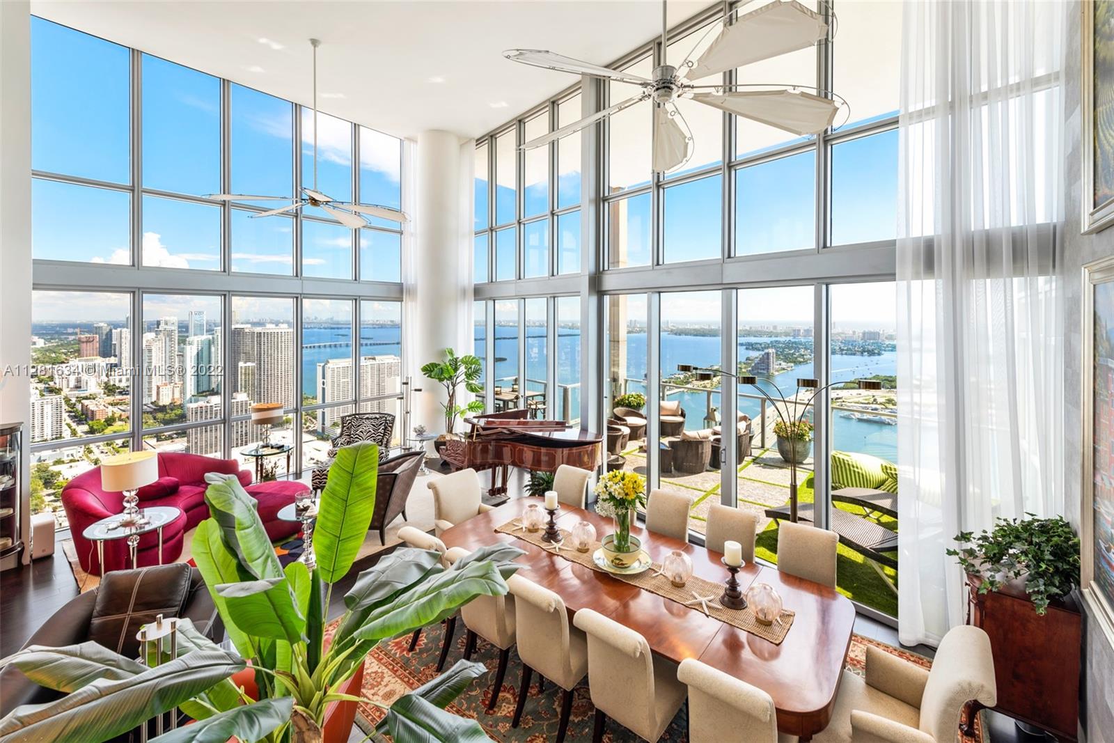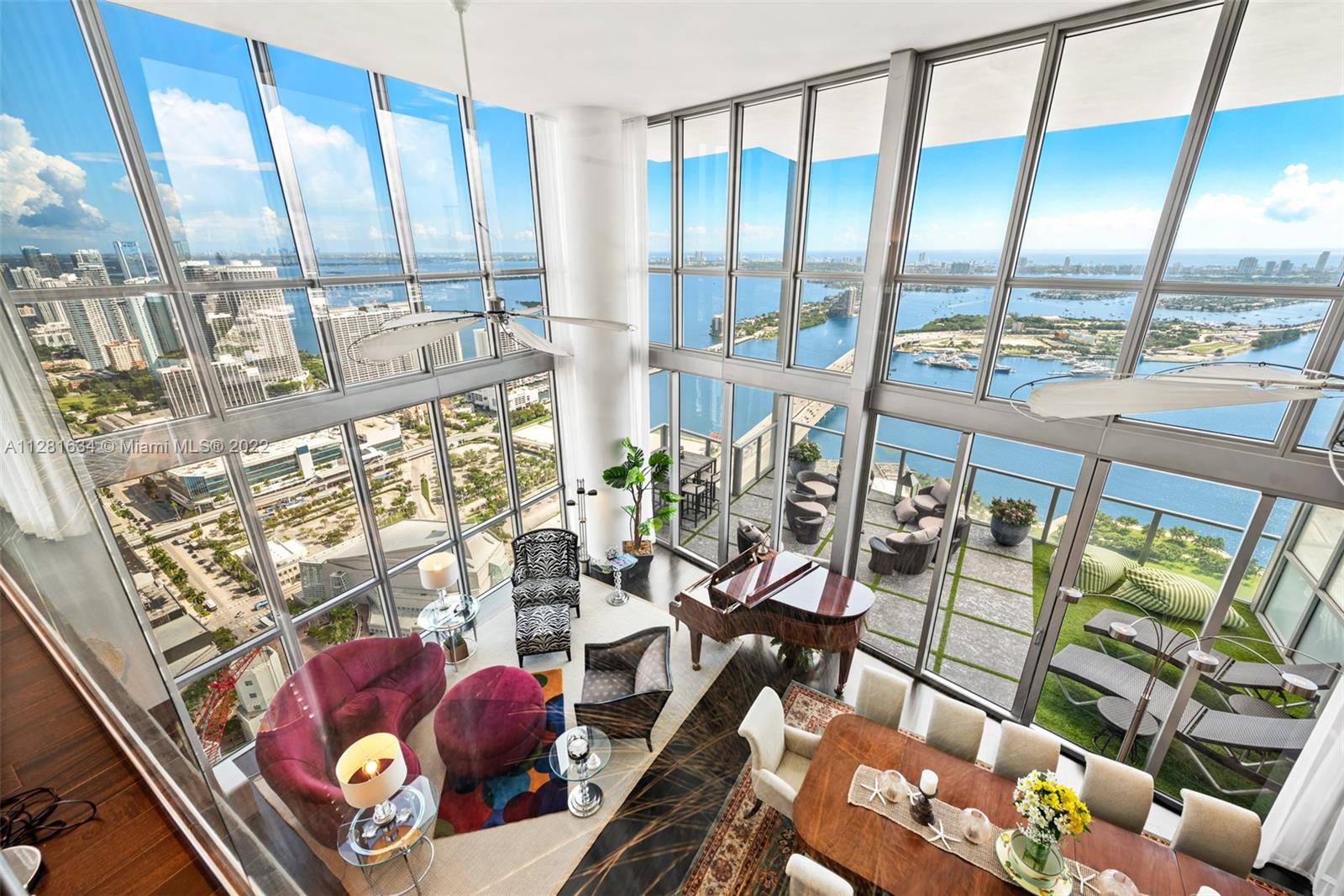 Best views in all of Miami from this corner 4bed/4bath masterpiece at Marquis Miami. PH level with 20' ceilings on 2 levels in a great layout. Direct water views overlooking Miami Beach and so much more. Warm and inviting with a massive balcony that was professionally designed for comfort and entertaining. Come see what it feels like to be above it all with stunning water views and proximity to Miami Beach and Brickell.