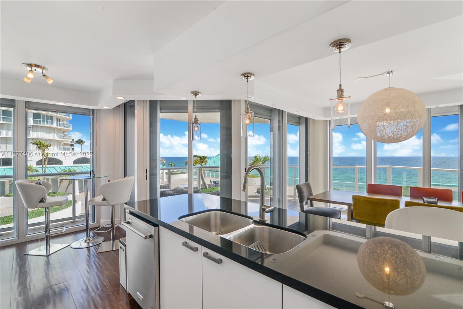 This beautifully Furnished and renovated fifth floor home boasts over 2,000 sq ft of direct oceanfront living space and 2 bed/2.5 baths plus a den. Breathtaking ocean views from floor-to-ceiling windows and wrap balcony. Open kitchen is ideal for entertaining, complete with stainless steel appliances, white high gloss cabinets and black quartz countertops. LED dimmable lighting sets the mood for informal or formal dining at the breakfast nook, island counter or the 8 person dining table. Master bedroom suite with balcony access, walk-in closet and a bathroom with a deep soaking roll top tub and a double person rainhead shower. Marble floors in the living and bedroom areas and wood like porcelain accent floors in the kitchen and baths. Electric window treatments and hurricane shutters.