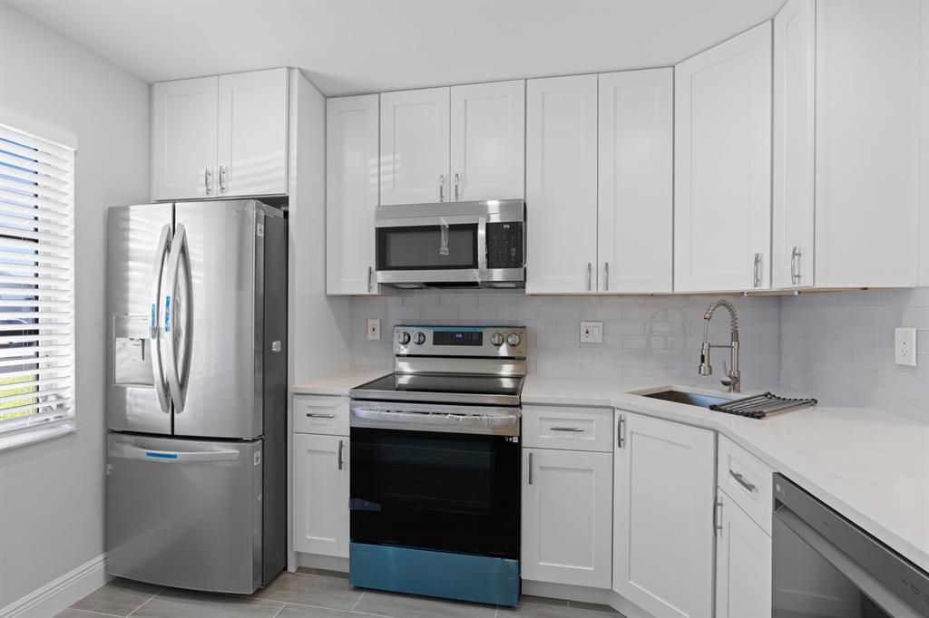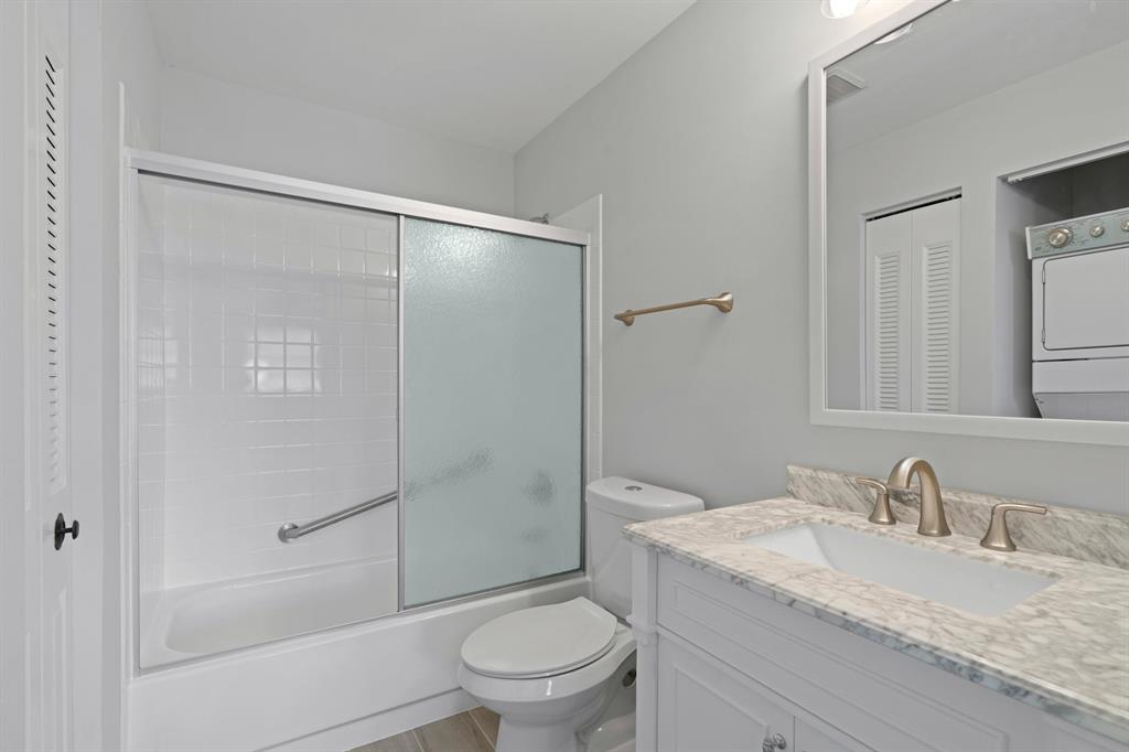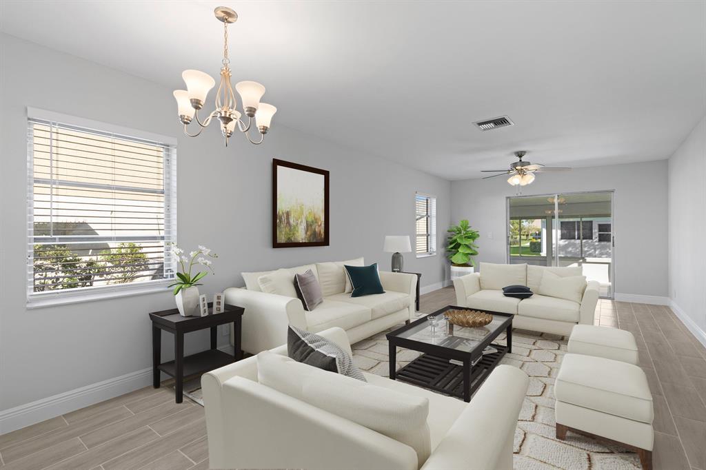 This Beautiful Renovated 2 bed 2 bath villa is in Cypress Lakes a 55+ Active Gated Community. Upgraded features included are Grey plank wood looking tile throughout, White Shaker cabinets with soft close drawers, Quartz tops w/tiled backsplash & Stainless Steel Appliances. Closet w/ Stackable Washer & Dryer, New Roof & Central Air. The Master bedroom has en suite bathroom with shower w/glass doors. The second bedroom has a full bathroom with a tub/shower combo. Covered & Enclosed porch. The front windows have Hurricane Accordion panels. The Cypress Lakes Community has a free 18 hole Par 3 Golf Course, Miniature golf, Pool, Hot tub, Fitness, Sauna, Tennis, Library, Bocce & Shuffleboard, Game room, Billiards & Ping pong tables, Recreation facilities, Clubhouse & more