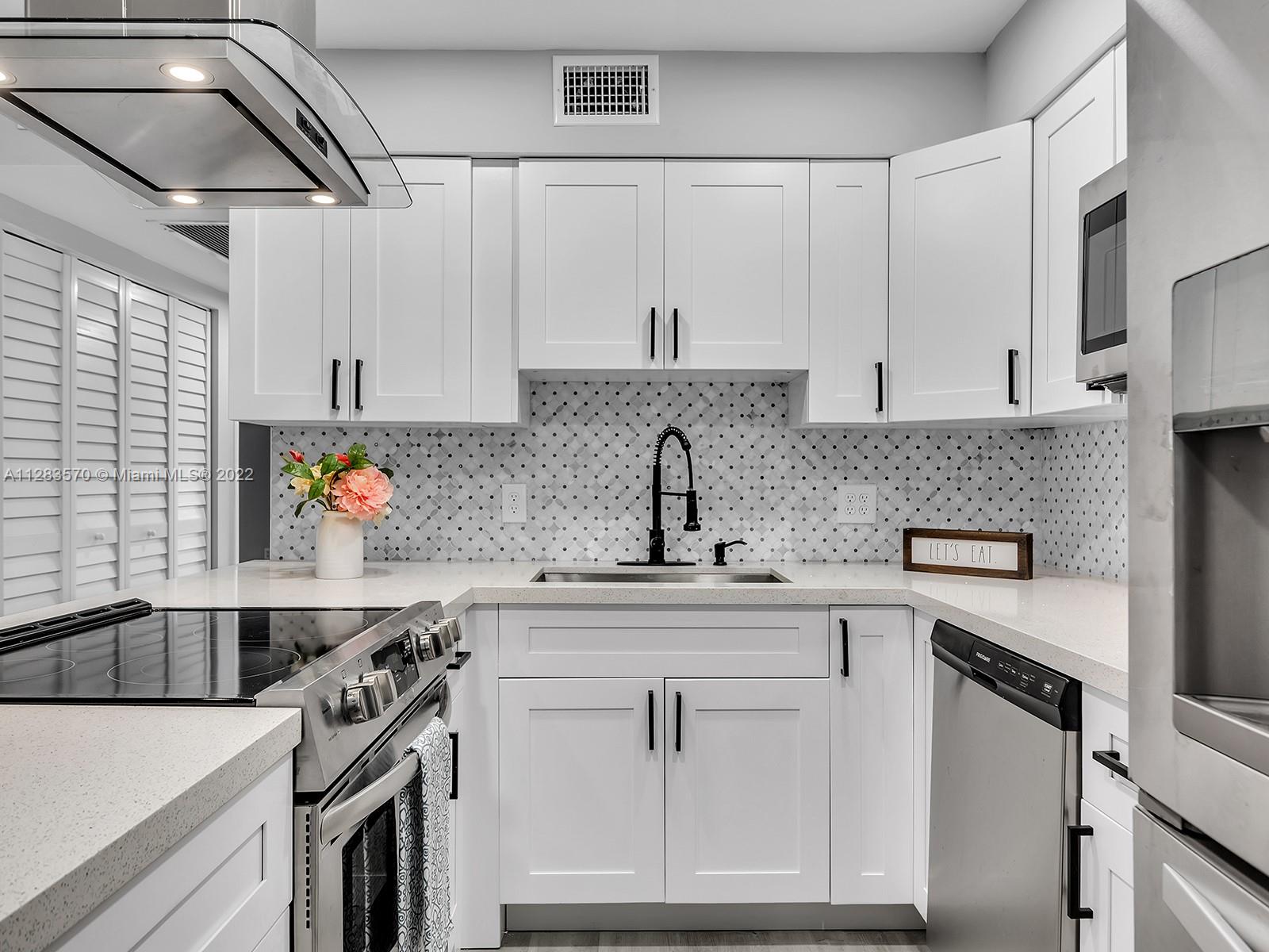 This gorgeous bright, modern, and completely remodel condo would welcome you upon entering the front door into a beautiful concept. 2 Bedrooms, 2 Bathrooms. This model offers a relaxing welcoming entrance from the kitchen into the living/dining room. The kitchen has been tastefully upgraded with soft closing white cabinets, white quartz, modern backsplash, stain-steel appliances, laminate waterproof flooring, smooth walls and ceiling finishes, and modern bathrooms. Be part of the Best 55+ community in the area offering resort-style amenities with numerous options to stay socially and physically active. Come and enjoy endlessly resort amenities!
