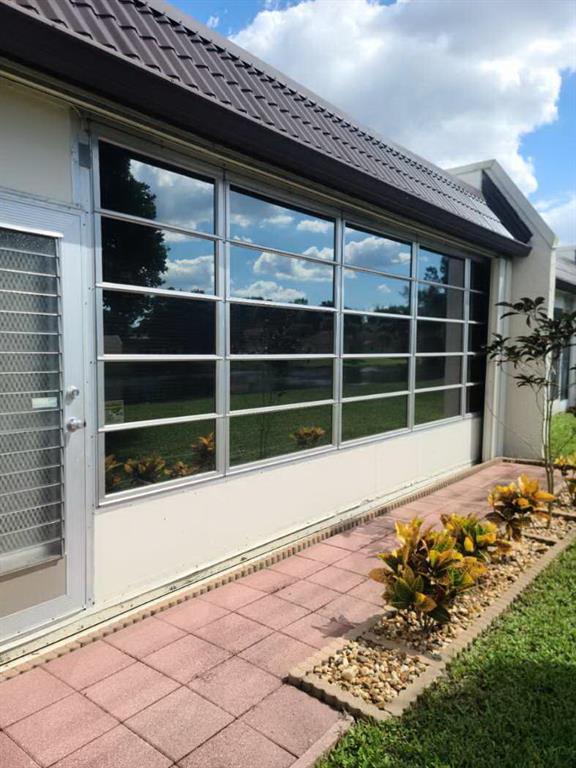 SPACIOUS END VILLA, PARKING RIGHT IN FRONT, A QUICK WALK TO LAKE SUSAN POOL. LARGE GLASS ENCLOSED PATIO W/ BEAUTIFUL WATER VIEW !! PATIO HAS TWO UTILITY CLOSETS , ONE WITH WASHER & DRYER. LOTS OF STORAGE. ACCORDION SHUTTERS ON ALL WINDOWS & PATIO. NICELY LANDSCAPED FRONT & BACK. LOTS OF AMENITIES IN THIS GUARD GATED COMMUNITY . LOCATED CLOSE TO SHOPPING, RESTAURANTS, & TURNPIKE ! AIRPORT & OCEAN A SHORT DRIVE AWAY ! PARADISE AWAITS !!