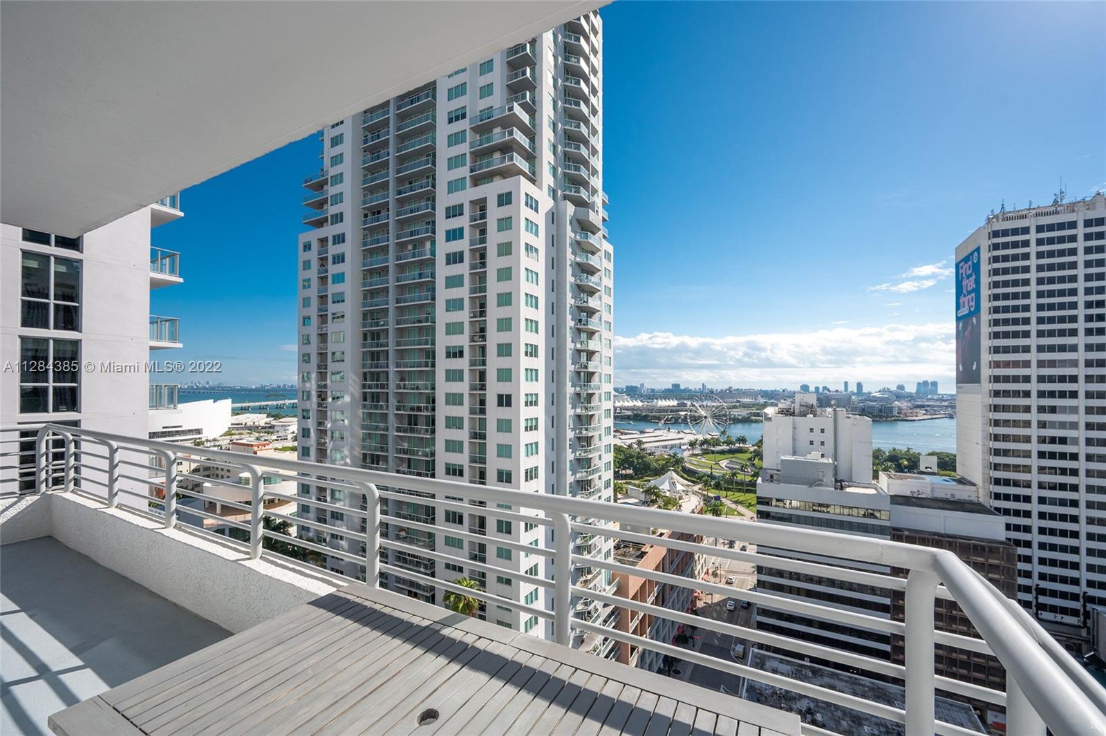 Corner unit on the 20th floor, 2 bedrooms/ 2 full bathrooms / split floor plan. Spectacular bay and city views from an oversized wrap around balcony. The building offers a luxurious lifestyle, 24hrs front desk, 2 pools, social room and a rooftop gym. Located in the heart of Downtown. Walking distance to Whole Foods, Brickell, Bay Front Park and American Airlines Arena. Apartment can be sold furnished or unfurnished.