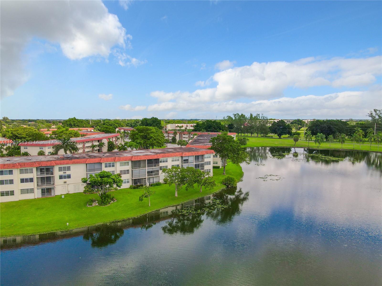 WHAT A VIEW!!! 2 BED / 1.5 BATH. Comfortable kitchen (Equipped with all appliances); living, & dining room. The porcelain countertop and backsplash in kitchen. Lake view from both rooms. Main bed has walk-in closet. Central AC. Newer water heater. Spend evenings on your balcony that overlooks a lake and be dazzled by most amazing sunsets. 1 assigned parking space and over 20 guest spaces are available nearby for a second car and/or visitors. Amenities include FREE two 18 hole golf courses, heated swimming pools, state of the art fitness center, restaurant, club house, library, tennis, pickle ball, bocce ball, shuffleboard and more! This is pet friendly community with 24 hour security, manned gate. Do not miss the opportunity.