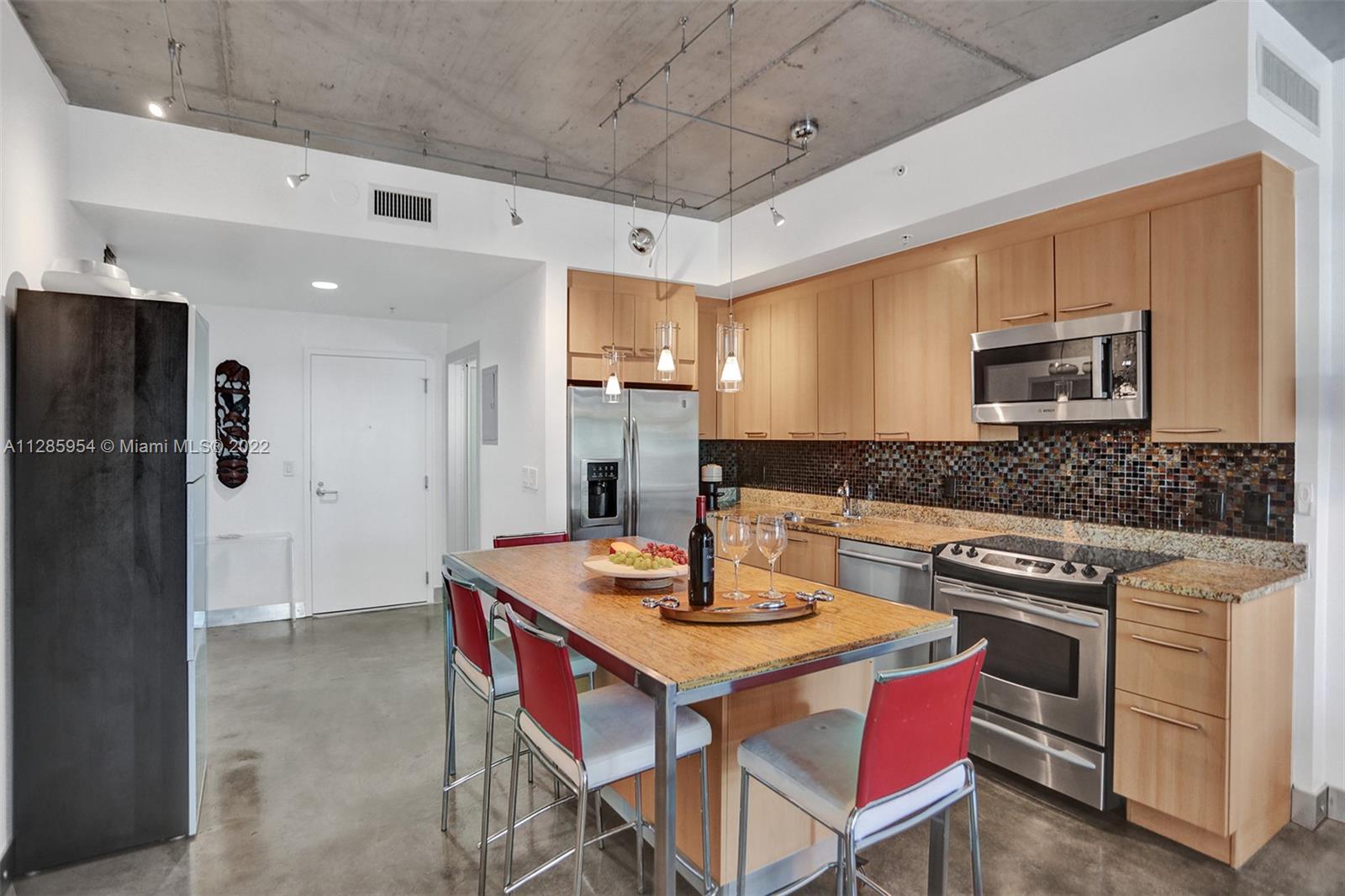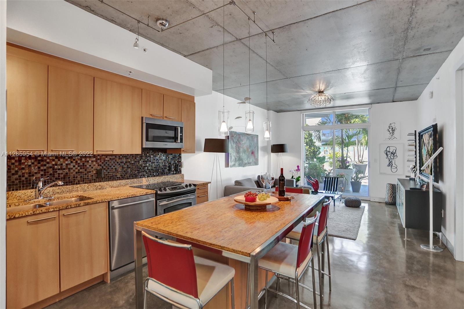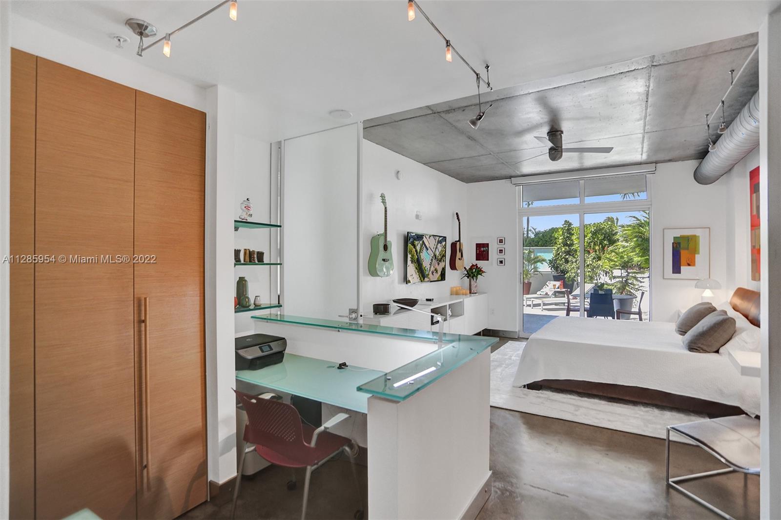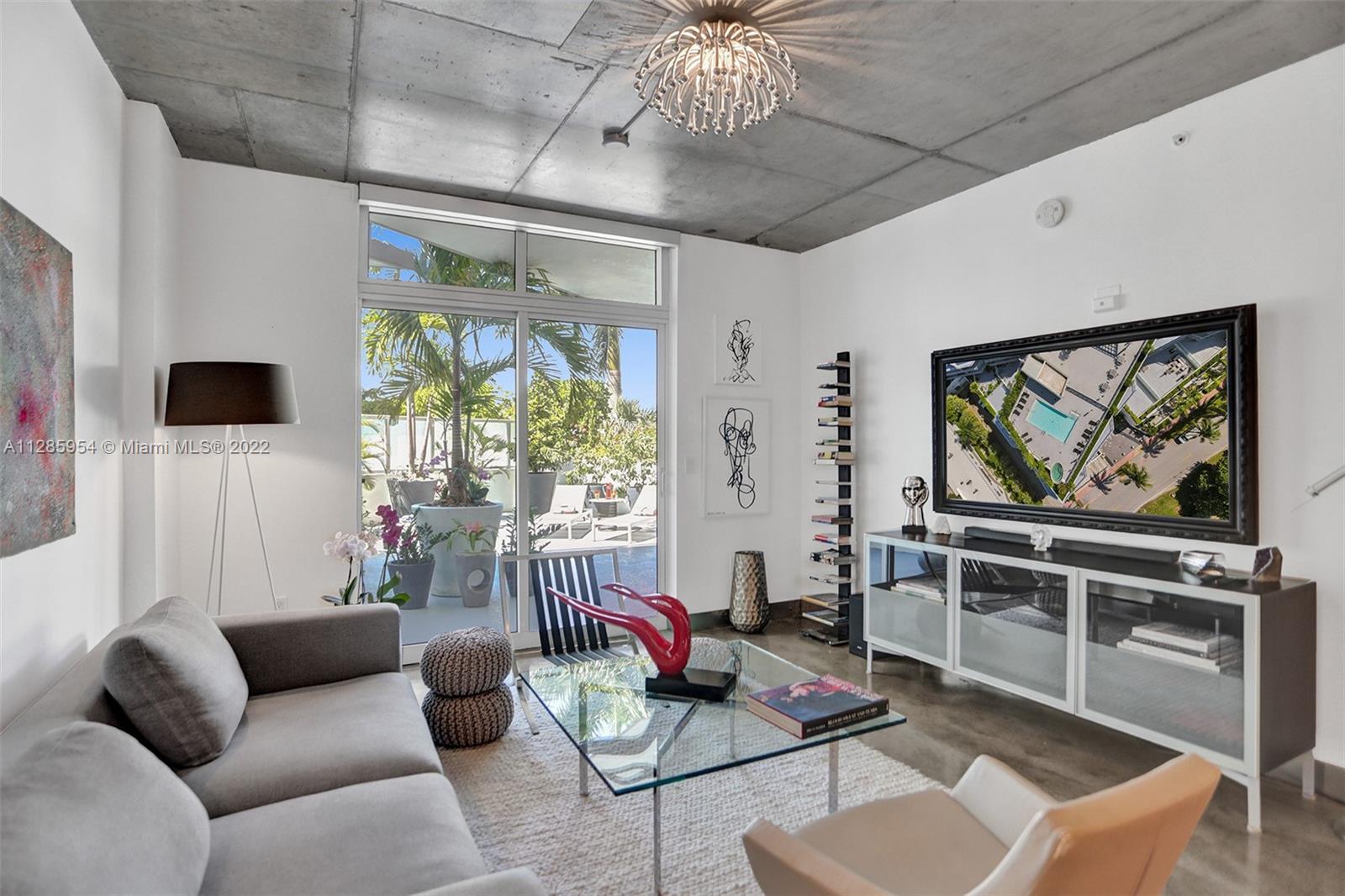 LUXURIOUS LOFT TYPE APARTMENT WITH 700 SQ FT OF OPEN TERRACE. ENJOY THE INDOOR AND OUTDOOR IN MIAMI BEACH WITHIN WALKING DISTANCE TO CONVENTION CENTER, LINCOLN ROAD, HOUSES OF WORSHIP, GREAT RESTAURANTS AND SHOPPING. ONE BEDROOM, 1.5 BATHS. 9.5 FT CEILINGS, CUSTOM ITALIAN FROSTED GLASS DOORS, CUSTOM ITALIAN CLOSETS AND OFFICE ALL BY GLOTTMAN DESIGN. MASTER BATH REMODELED 2016, BUILT-IN IRONING BOARD W/IRON PLUG & LIGHT. WASHER AND DRYER INSIDE UNIT, CENTRAL A/C REPLACED 2014, SEALED CONCRETE FLOOR & CEILING. STAINLESS STEEL APPLIANCES WITH GRANITE COUNTERTOPS AND POGGENPOHL CABINETS. AMPLE PARKING SPACE CLOSE TO ENTRANCE TO ELEVATOR, WITH EXTRA ROOM ON ALL SIDES. SELLING UNIT UNFURNISHED BUT SOME PIECES ARE NEGOTIABLE. $73.09 EXTRA CONDO FEE PER MONTH ENDING DEC 2022. EASY TO SHOW.