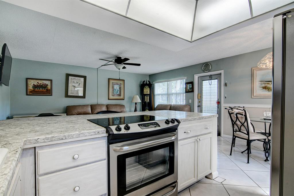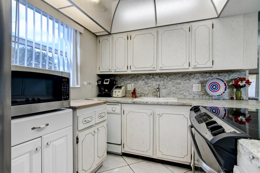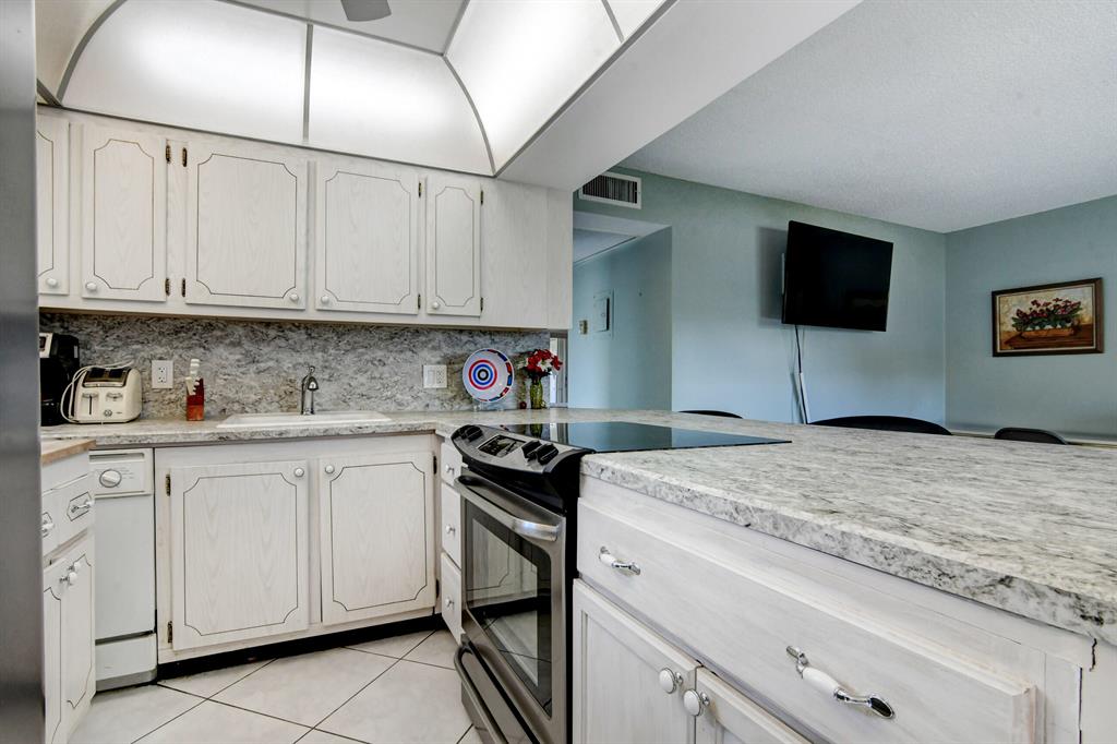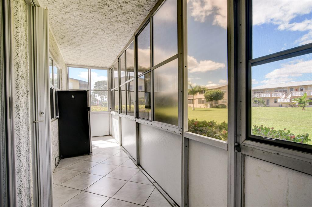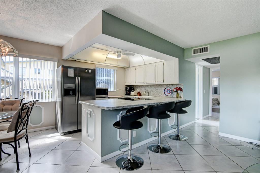 Find more to enjoy in this beautifully maintained condo in Century Village. You'll love this bright, sunny space and its desirable corner location. Bright, cheerful kitchen features granite countertops, stainless steel appliances and seated bar for casual dining. Charming open-concept floorplan adds a sense of space and flow, with diagonal tile flooring and updated fixtures and finishes. Primary bedroom offers en suite bath and direct access to the Florida room, offering a sheltered space for a home office or hobby space. You'll love the amenities of Century Village, with clubhouse, indoor and outdoor pools, spa, and sauna, game rooms, outdoor dining spaces, shuffleboard, pickleball, tennis, and fitness studio. Get out and about with the community's courtesy buses.