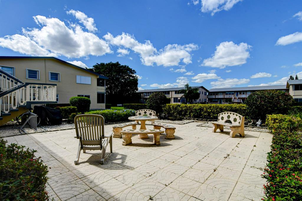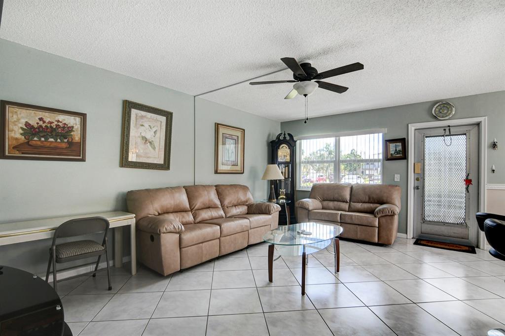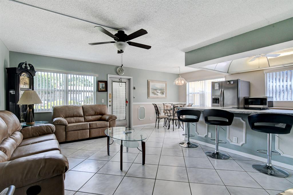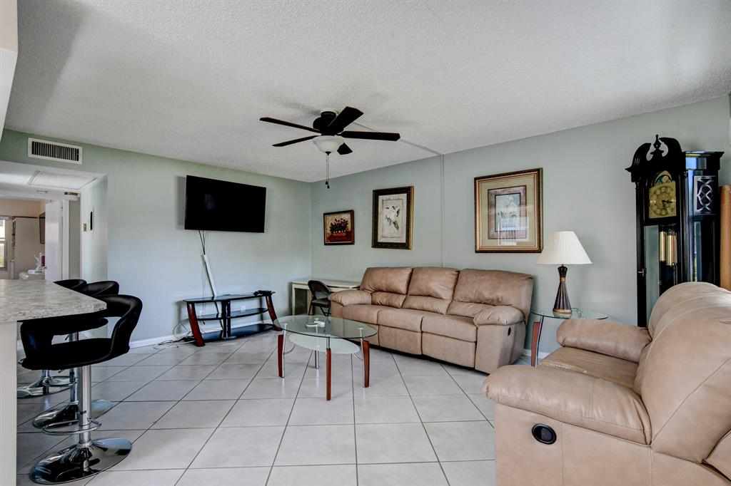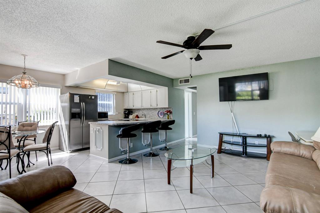 Find more to enjoy in this beautifully maintained condo in Century Village. You'll love this bright, sunny space and its desirable corner location. Bright, cheerful kitchen features granite countertops, stainless steel appliances and seated bar for casual dining. Charming open-concept floorplan adds a sense of space and flow, with diagonal tile flooring and updated fixtures and finishes. Primary bedroom offers en suite bath and direct access to the Florida room, offering a sheltered space for a home office or hobby space. You'll love the amenities of Century Village, with clubhouse, indoor and outdoor pools, spa, and sauna, game rooms, outdoor dining spaces, shuffleboard, pickleball, tennis, and fitness studio. Get out and about with the community's courtesy buses.