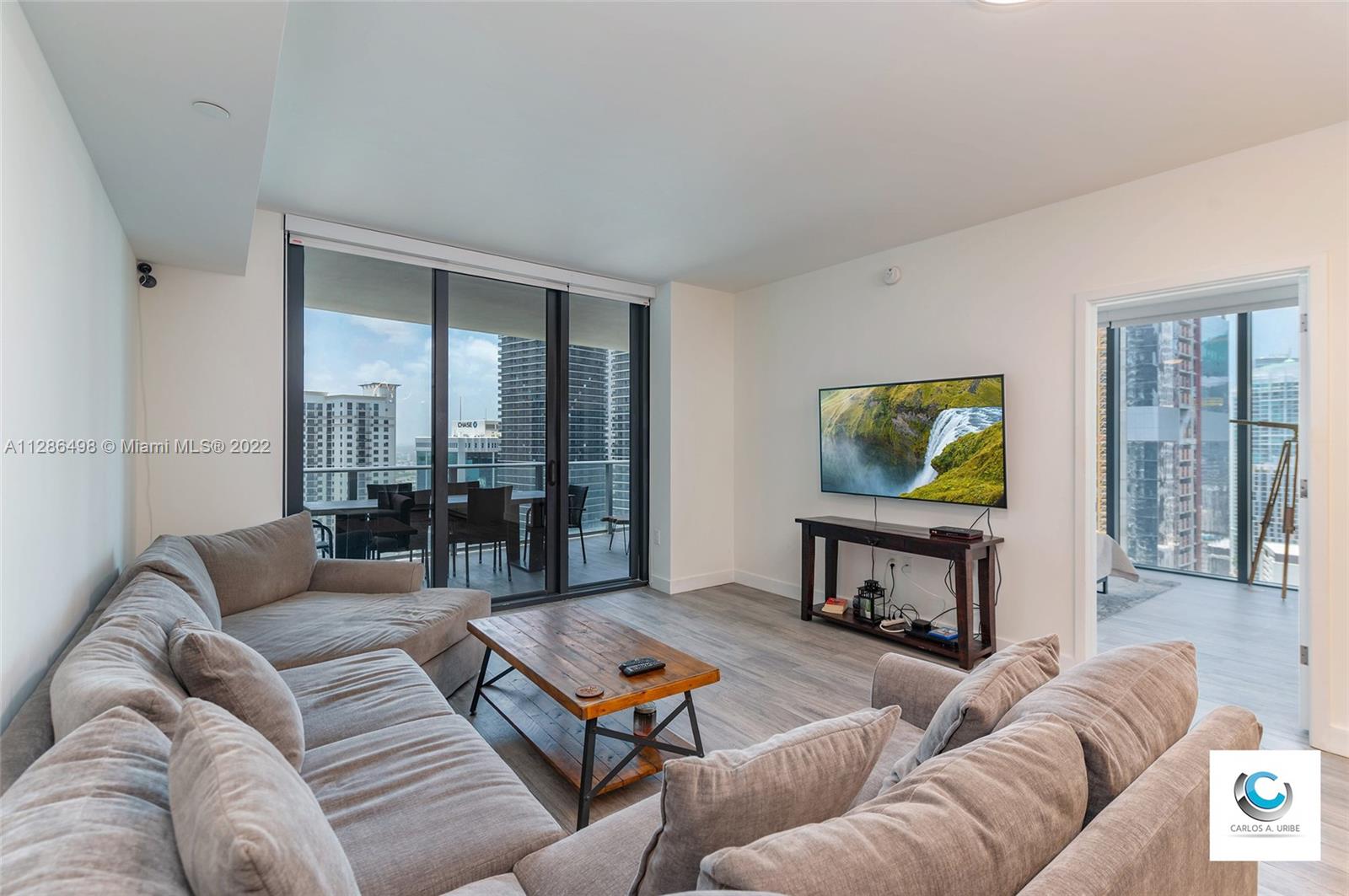 Spectacular Unfurnished corner unit 11 Line at 1010 Brickell Condo. Unit features: 1 bed + Enclosed Den, 1.5 baths, glass-enclosed shower, custom made closets, window treatments, wood like tile floors, 9-foot ceiling heights, top of the line Smeg appliances, & 1 Parking ! Live & play in this luxury building that offers: outdoor movie theatre, restaurant & swimming pool at 50th floor rooftop; Co-ed Hammam spa w cold & hot Jacuzzi, massage & treatments rooms, sauna & steam room at 12th floor; basketball & racquetball courts, running track, indoor heated swimming pool, fitness center, party room w kitchen, open terrace & barbeque, kids room w bowling, virtual golf simulator, ping-pong, among others. Excellent location next to public transportation, Brickell City Centre, & more.