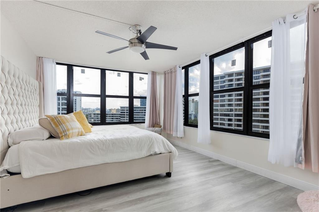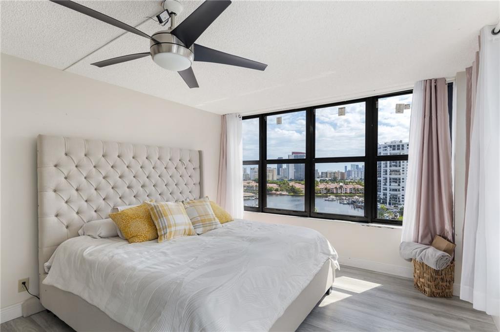 Huge 2 beds/2baths corner unit offers wide plank vinal flooring though out. Windows & sliding glass door are ESW Prestige High Impact Windows. Over looks the tennis courts & the bay/boat docks. Kitchen has S/S appliances. Amenities include Tennis Courts, fitness center 2 heated pools, 24 hr security in the lobby, courtesy bus, barbecue area & valet parking. Close to the beach, Gulfstream casino and the Aventura Mall. Can be rented right away.