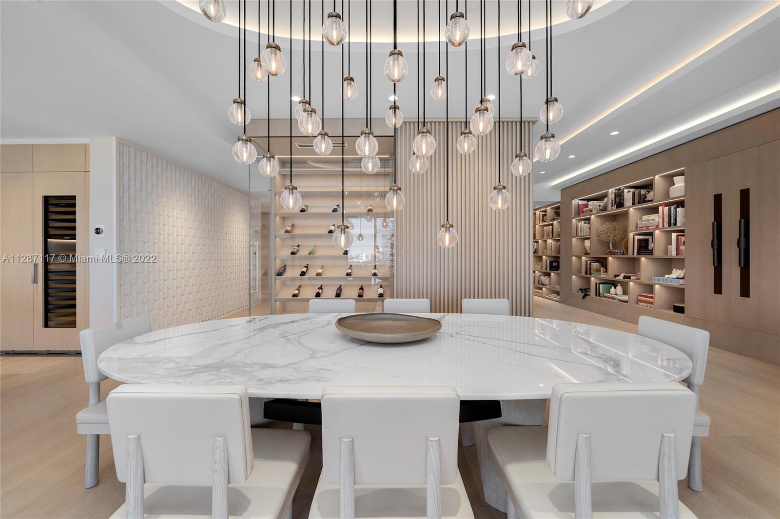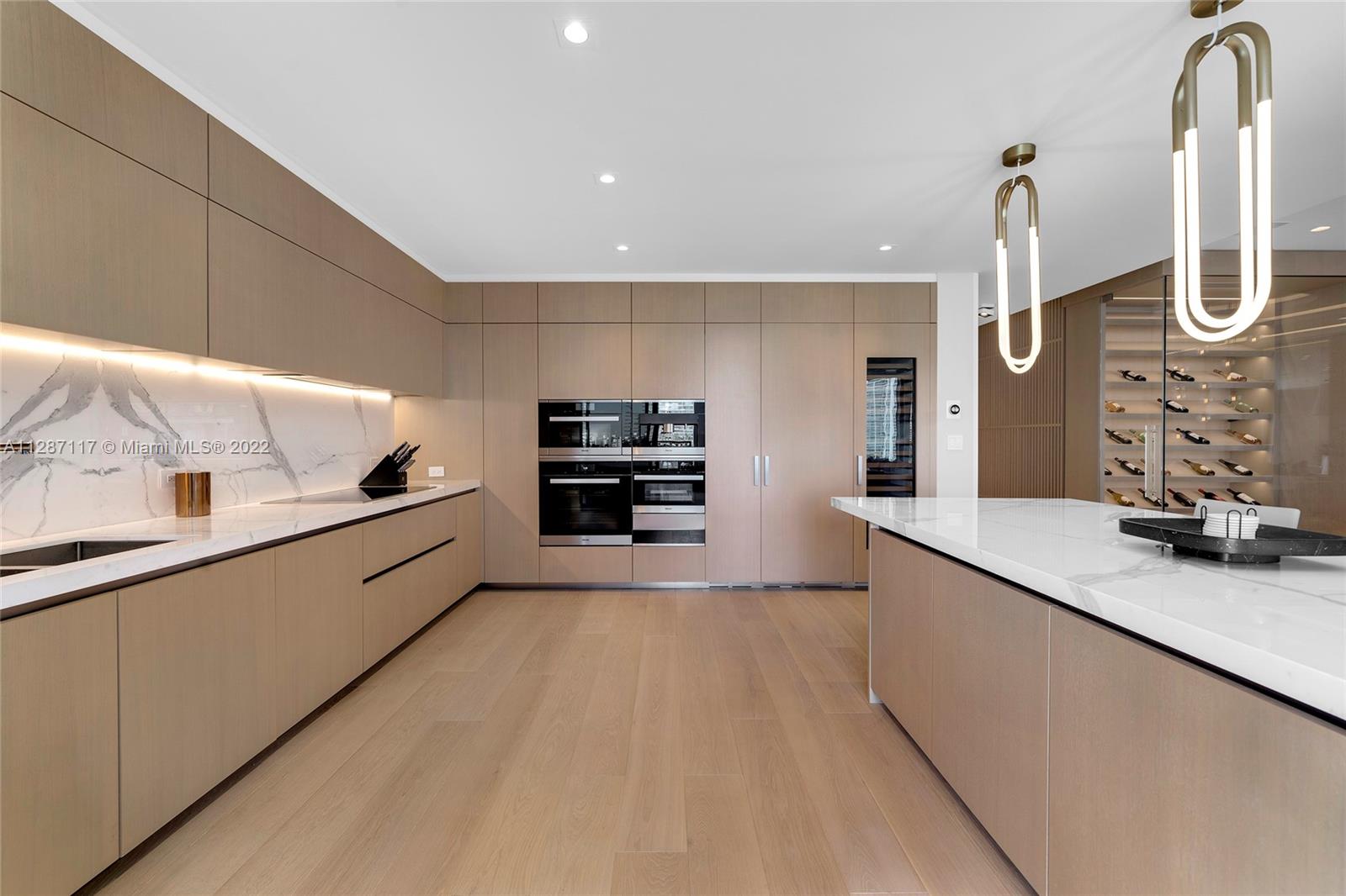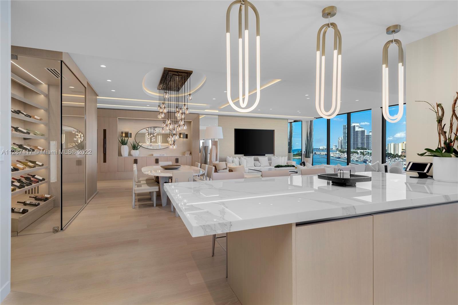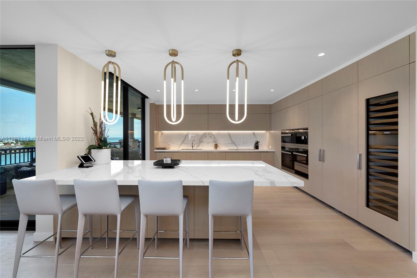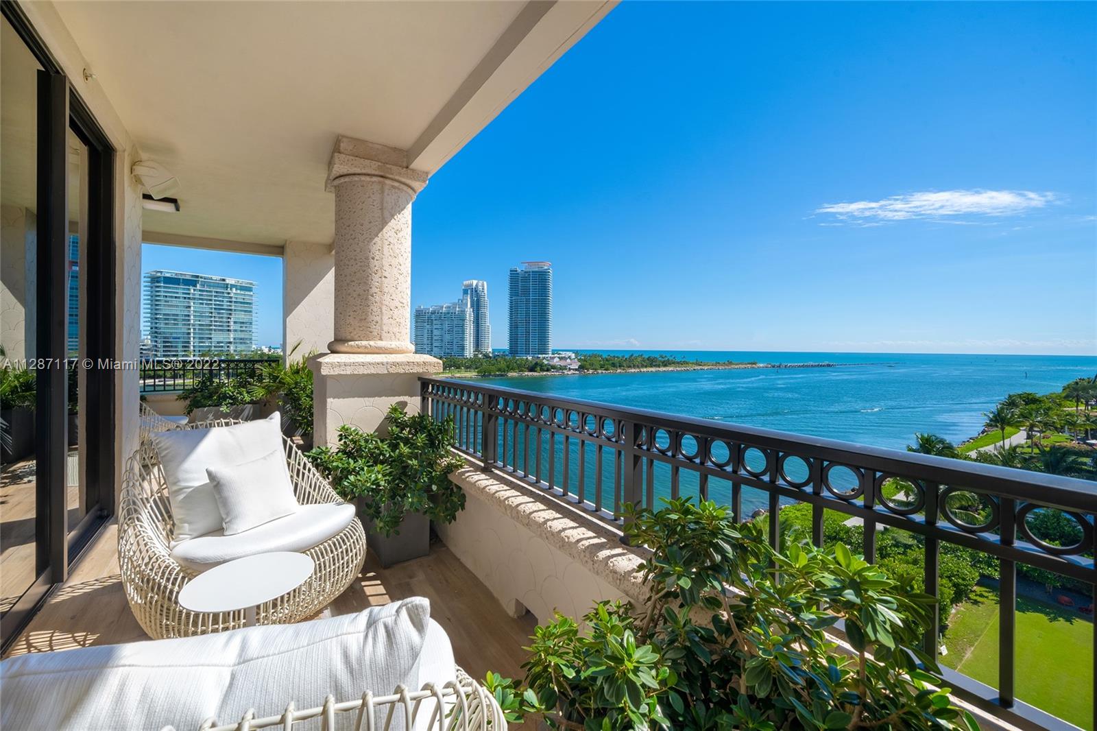 This stunning custom designed Northeast corner unit at Palazzo Della Luna is being offered furnished. This perfectly proportioned unit offers 4,904 SF w/wide plank oak wood floors, custom millwork, lighting & wall treatments throughout, plus a large wraparound terrace with direct Biscayne Bay, Government Cut, Miami Beach & Ocean views. Spacious flow through living & dining room, & separate media area. Boffi designed chef’s kitchen & top-of-the-line Miele & Sub-Zero appliances. The private principal suite has a sitting area, dual walk-in closets, direct water views, amazing bathroom w/book-matched Carrara marble rain shower & soaking tub. 2nd private back terrace w/views to Fisher Island & 3 other bedrooms w/en-suite bathrooms. Enjoy 6-star Palazzo amenities plus all Fisher amenities.