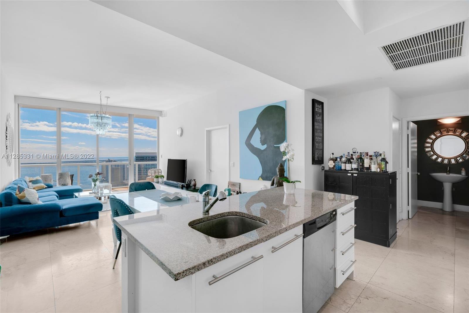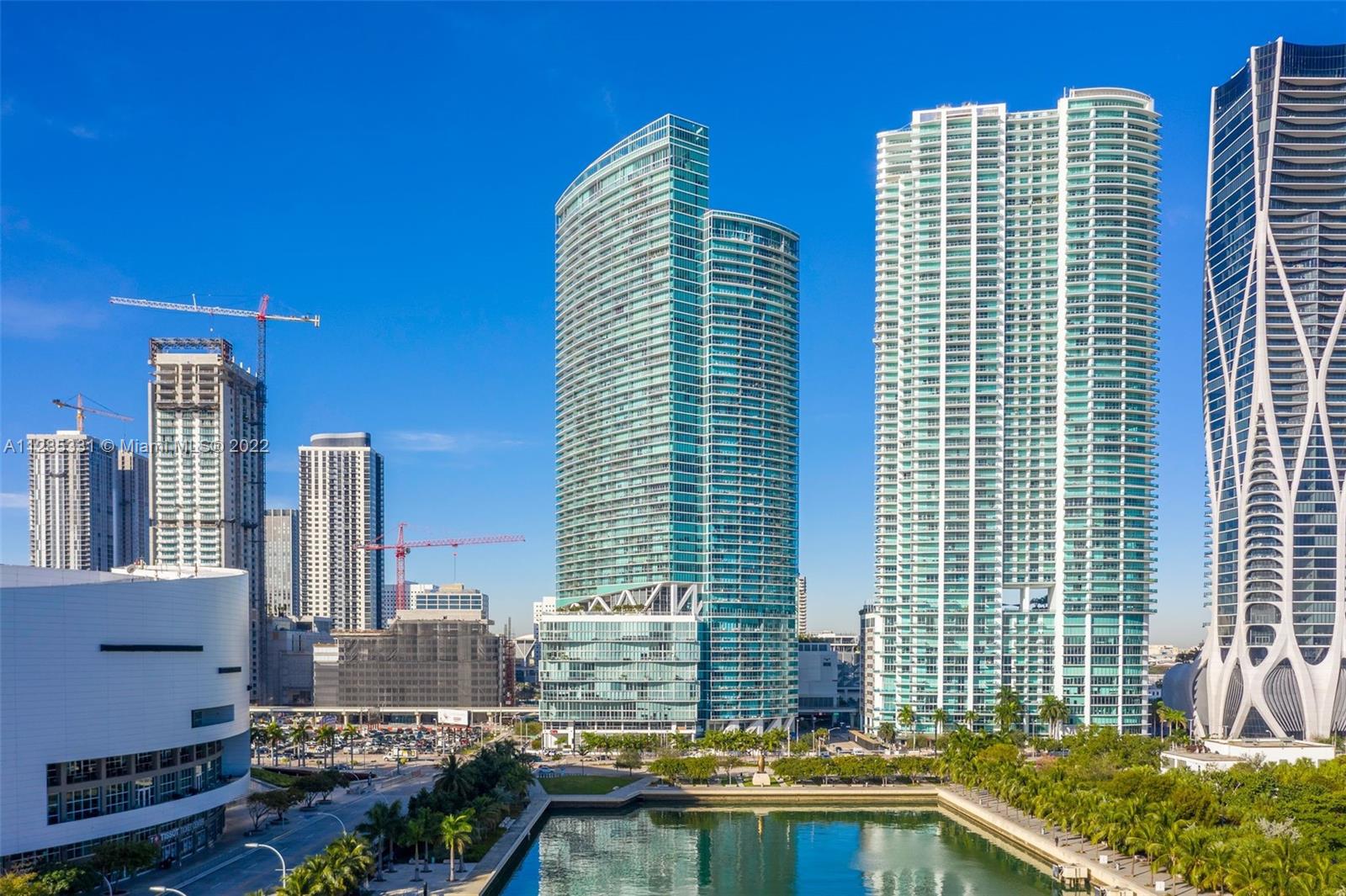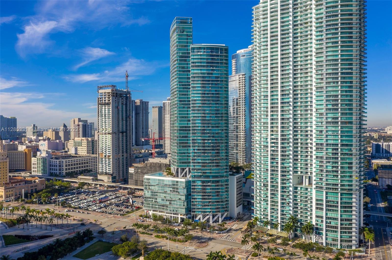 A magnificent, split 2-bedroom residence at MarinaBlue w/ 2.5 baths; marble flooring throughout; motorized shades; large, custom-built closets in both bedrooms; brand new air conditioning unit; stainless steel kitchen appliances; & 10-foot-high ceilings w/ floor-to-ceiling glass windows offering awe-inspiring, panoramic views of the Atlantic Ocean, Biscayne Bay, & Downtown Miami skyline from the 55th floor. Very unique floor plan; only 5 of its kind in the entire building. Both bedrooms have balcony access & direct water views. Includes 1 assigned parking space & 1 assigned storage cage. Building amenities include 2 swimming pools (sunrise & sunset), whirlpool hot tub, fitness center, business center w/ conference room, 24-hour valet parking, sand volleyball court, party room & BBQ grills.
