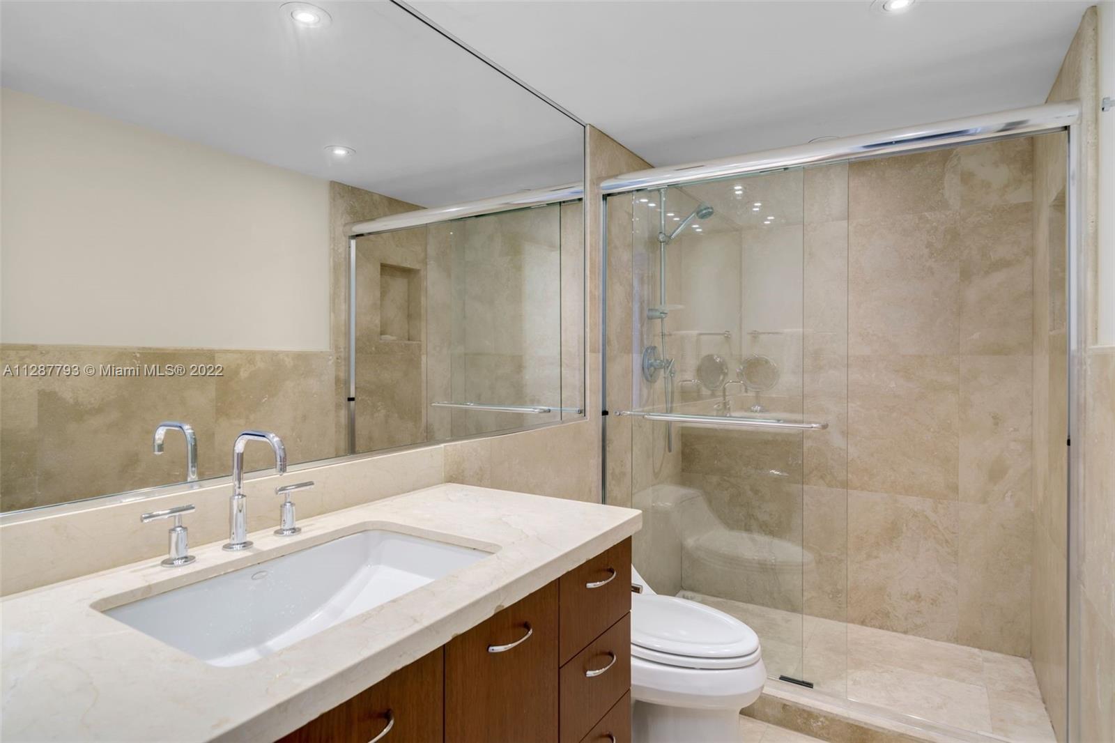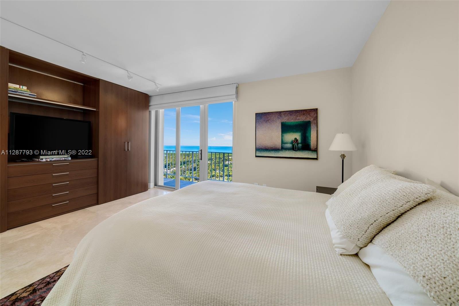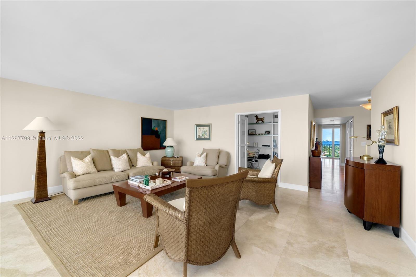 Enjoy the most breathtaking views of this spacious Casa del Mar apartment. Pass through views of the ocean, beach and pool to the East and Biscayne Bay to the West. It has 2 spacious bedrooms/ 2 full baths plus a small office. Walk right down to the beach and pool, tennis courts and basketball courts. Private foyer shared with just one other apartment. One assigned, covered parking space (#135) plus ample extra parking on the second floor deck. Very easy to show!
