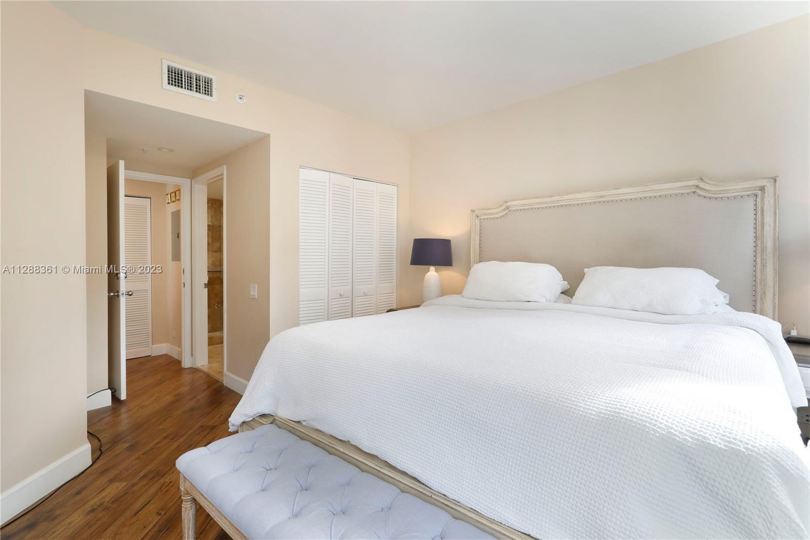 Absolutely lovely 2 bedroom, 2.5 bathroom unit in Courvoisier Courts, a full-service building on beautiful Brickell Key. The spacious floor plan includes a large, open living and dining room that steps out to the deep balcony with wonderful water and city views! The bright, white kitchen receives abundant natural light and features a charming eat-in area. The primary bedroom includes a renovated bathroom and walk-in closet, and the spacious secondary bedroom has 2 closets and its own updated bathroom! Other features include in-unit washer and dryer, 1 parking space, and upgraded flooring. Enjoy the building’s waterfront pool, large gym, sports courts, billiards room, and much more right in the heart of Miami!
