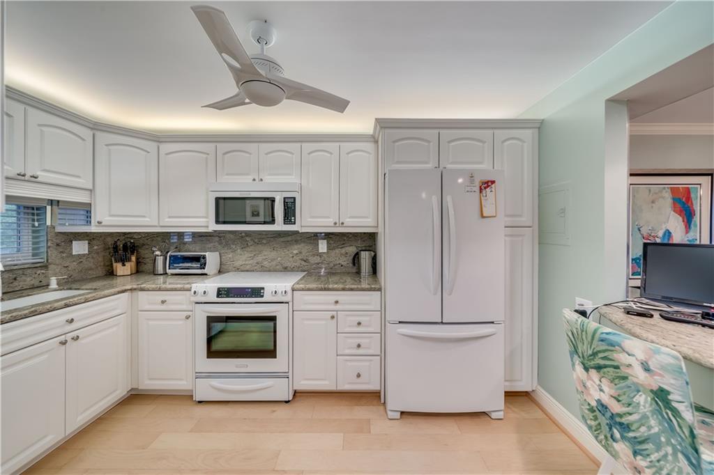 Large Bright Corner Condo With Lake and PGA Golf Course Views-Fully Equipped Turn Key Unit-Has Washer and Dryer-Wood Flooring Throughout-All Windows Are Upgraded For Storm Protection-Upgraded White Kitchen With Large Granite Island-Both Bathroom Are Upgraded-Two Full Bedrooms With Walk In Closets-Tastefully Decorated And Furnished-Rec Lease Paid In Full-May Have One Pet To 20 Lbs.-Steps To Pool and Parking-Community is 55+ Free Golf-14 Tennis Courts-7 Pools-Fitness Center-Restaurant-Theater-24 Hr. Security Patrol-Assoc. Represents Housing For Older Persons Authorized (HOPA) Please see Broker Remarks Before Showing.