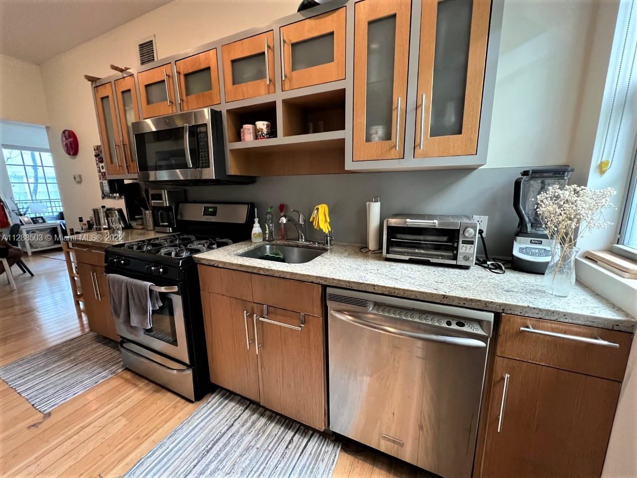 1bed/1bath CORNER UNIT beautifully finished with IMPACT WINDOWS in one these so charming Mediterranean style building in the heart of South Beach. Bamboo wood floors, marble bathroom with Duravit fixtures, recessed lighting throughout, washer/dryer, and a fully equipped gourmet kitchen with granite counter tops, custom Italian cabinetry, stainless steel appliances, dishwasher and gas range. Tastefully designed with lots of closet-space, a must see! (The current lease goes to May 14, 2023.)
