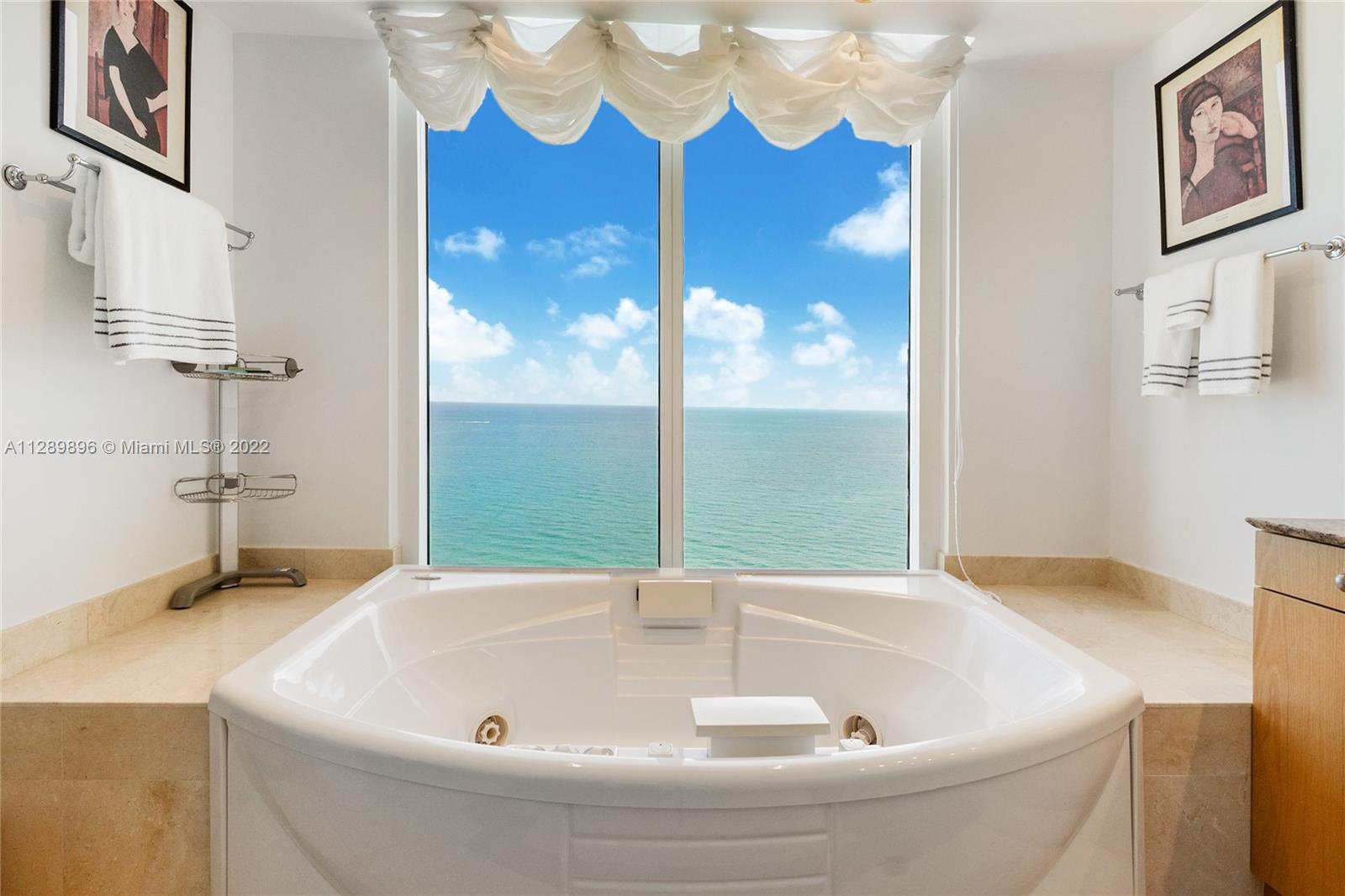 Ocean Two Condo, Sunny Isles Beach spacious 3 bed/ 4.5 bath, 2440 sq ft interior flow through unit with direct ocean & city views. Spacious sunrise and sunset balconies. Foyer Entry, Formal Dining Room, Eat in Kitchen, Marble & Wood flooring, Private elevator entrance, exterior private laundry room, large closets and plenty of storage. Building interior common areas renovated by Steven G. Amenities include 24 hour front desk, valet and security. Heated pool and beach service, Two outdoor hot tubs, spa with steam and sauna. Two story gym, lifestyle center, massage & game room, children’s play room, two tennis courts, restaurant, dog park & conference room. Beachside cabana sold separately. Two assigned parking spaces and storage included. Pet friendly.Same day showings and Video Available