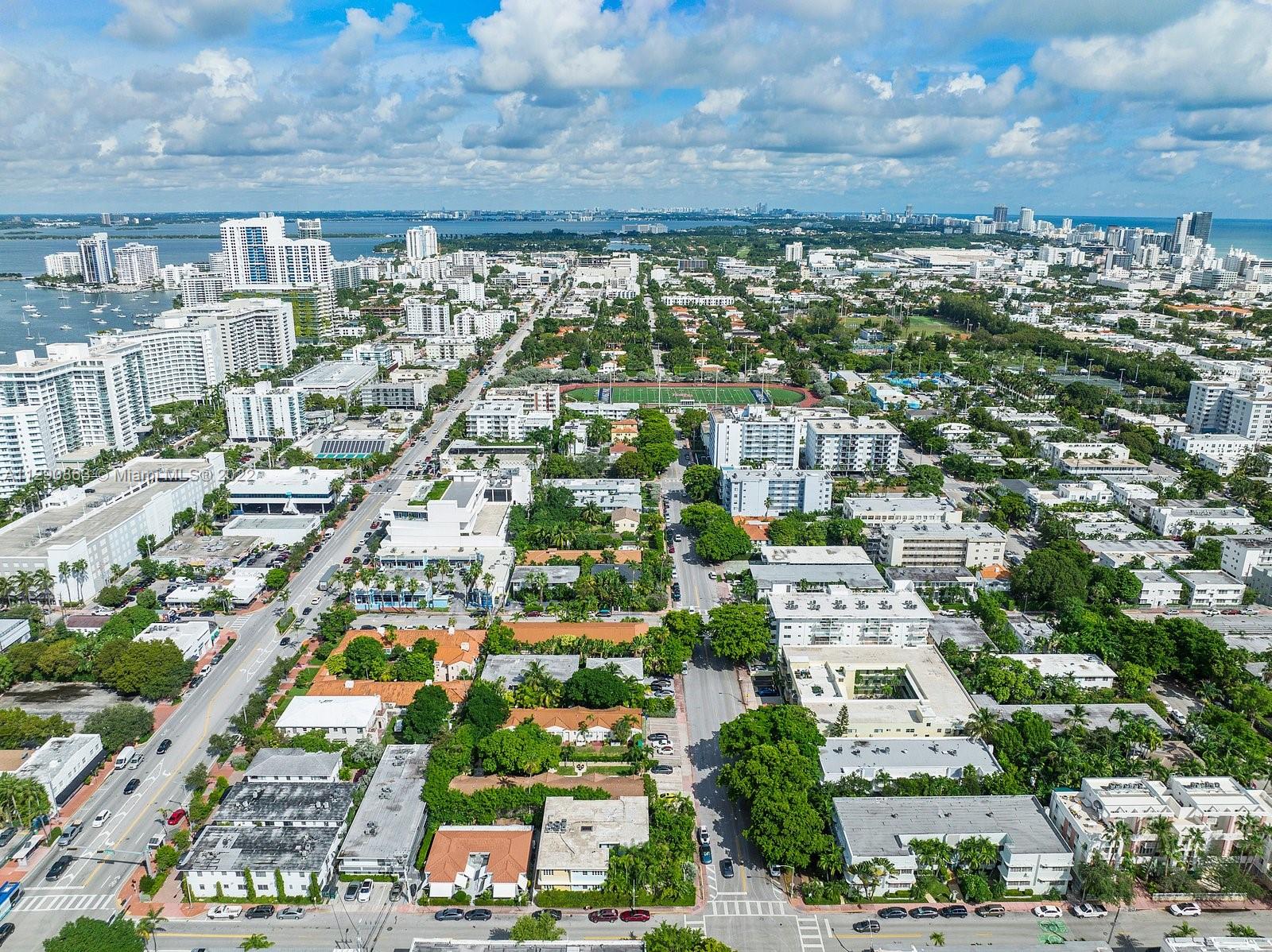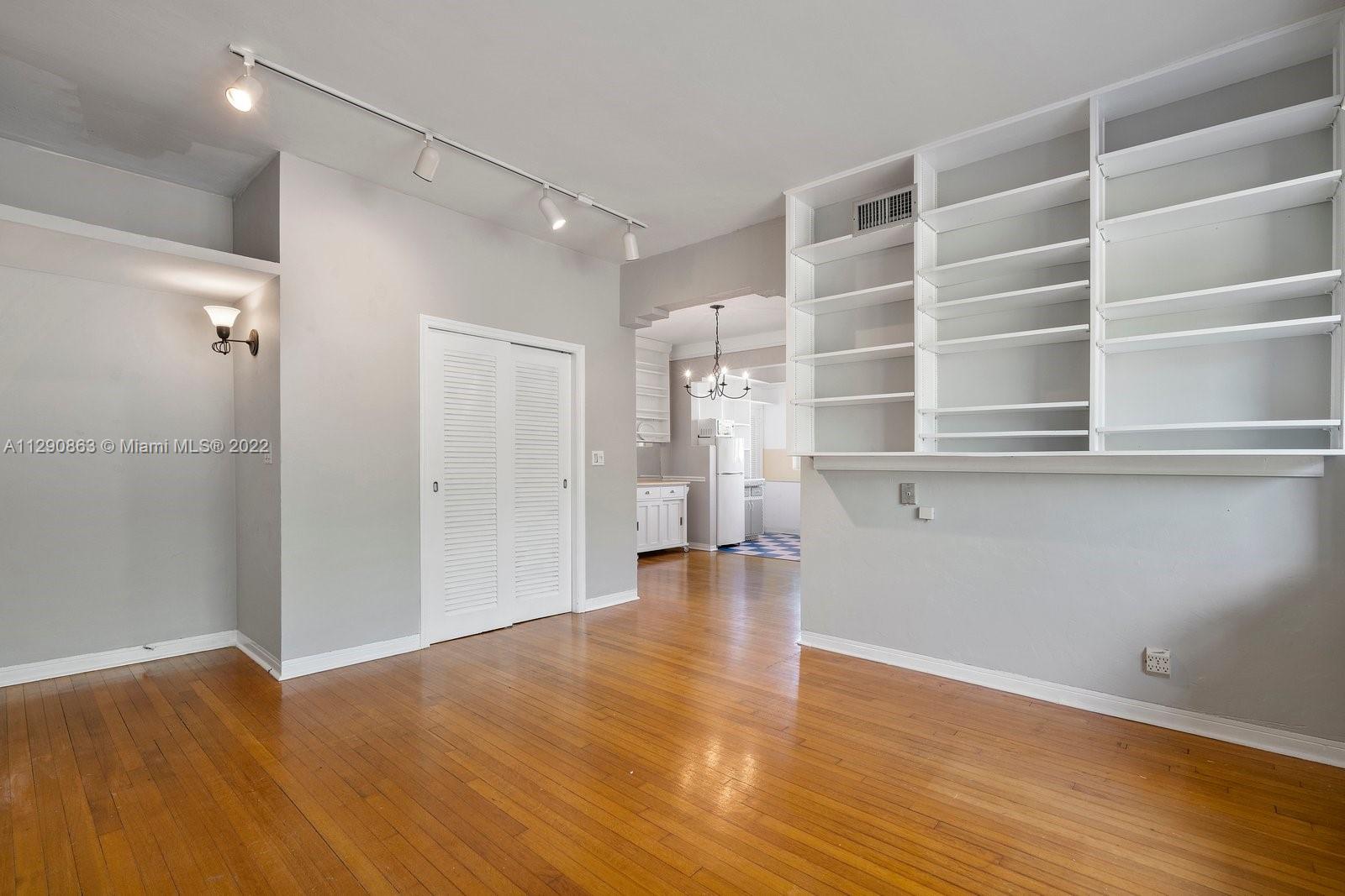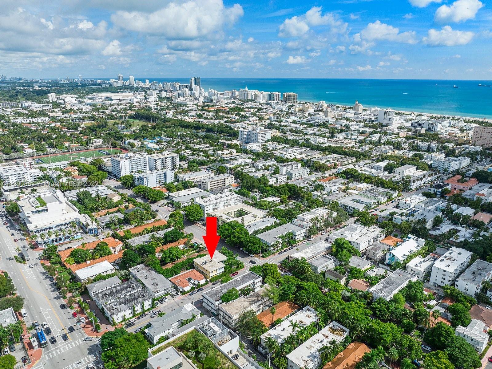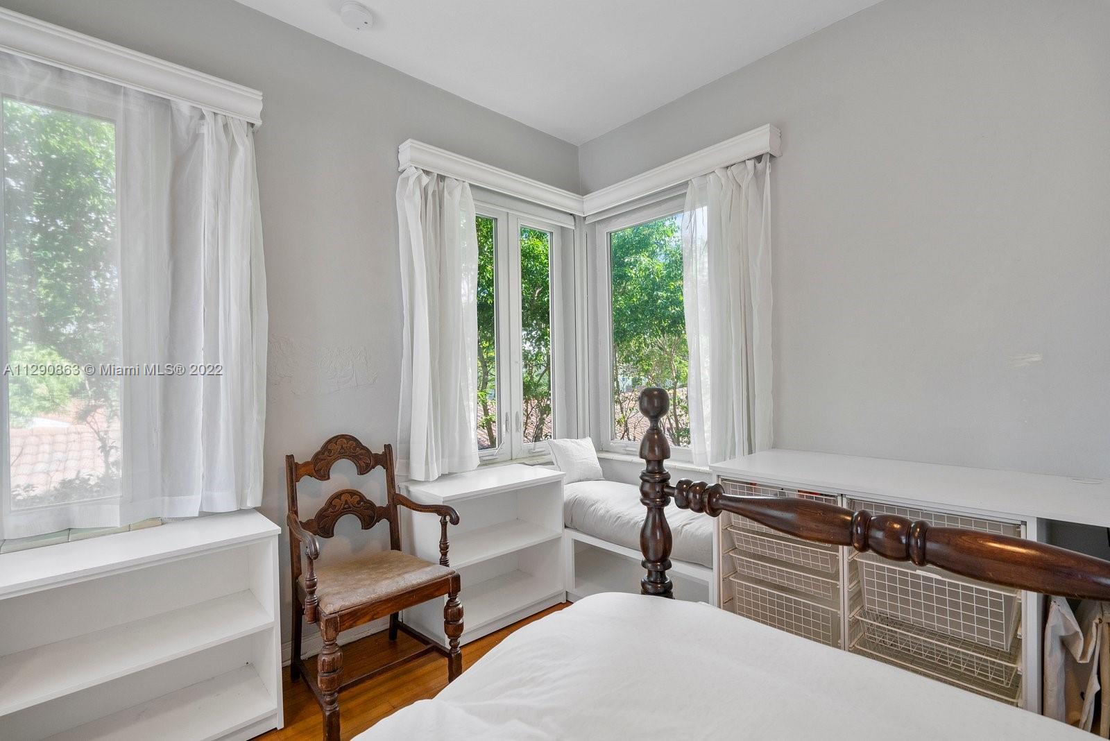 This mid-century deco building set back in lush, private garden was built by H.L Glasser. This charming spacious unit has treehouse views facing north and east, lots of natural light, 9 ft ceilings, red oak floors, gas fireplace & stove, 2 window side daybeds with one that pulls out into a queen bed, custom storage, built in bookcases & hurricane impact windows. This historic Art Deco building has 6 units and is well maintained by long term owners. Relax in the flourishing garden with BBQ-area. Building has a shared W/D plus W/D hook-up in the unit. A quiet neighborhood with just a short walk to Target, Publix and Whole Foods, Baptist Hospital’s Urgent Care Center and Archetectoninica’s new Canopy Park, 8 minute walk to the Beach & 15 minute walk to Lincoln Road.