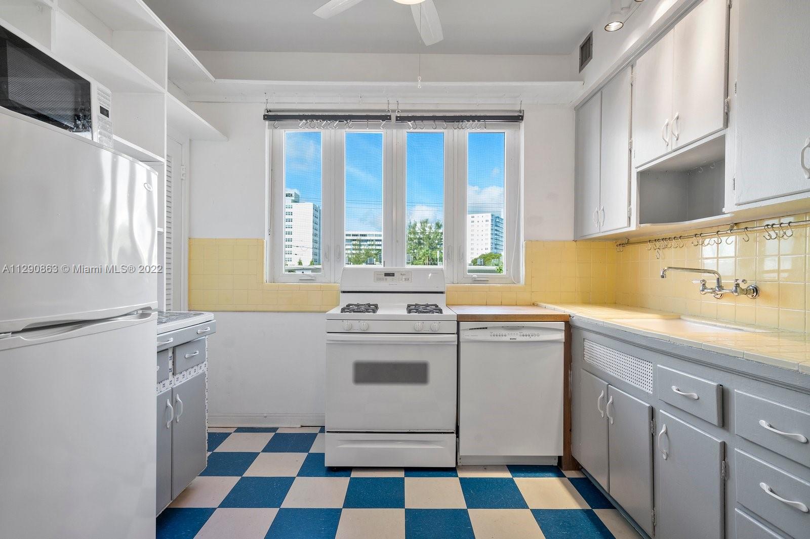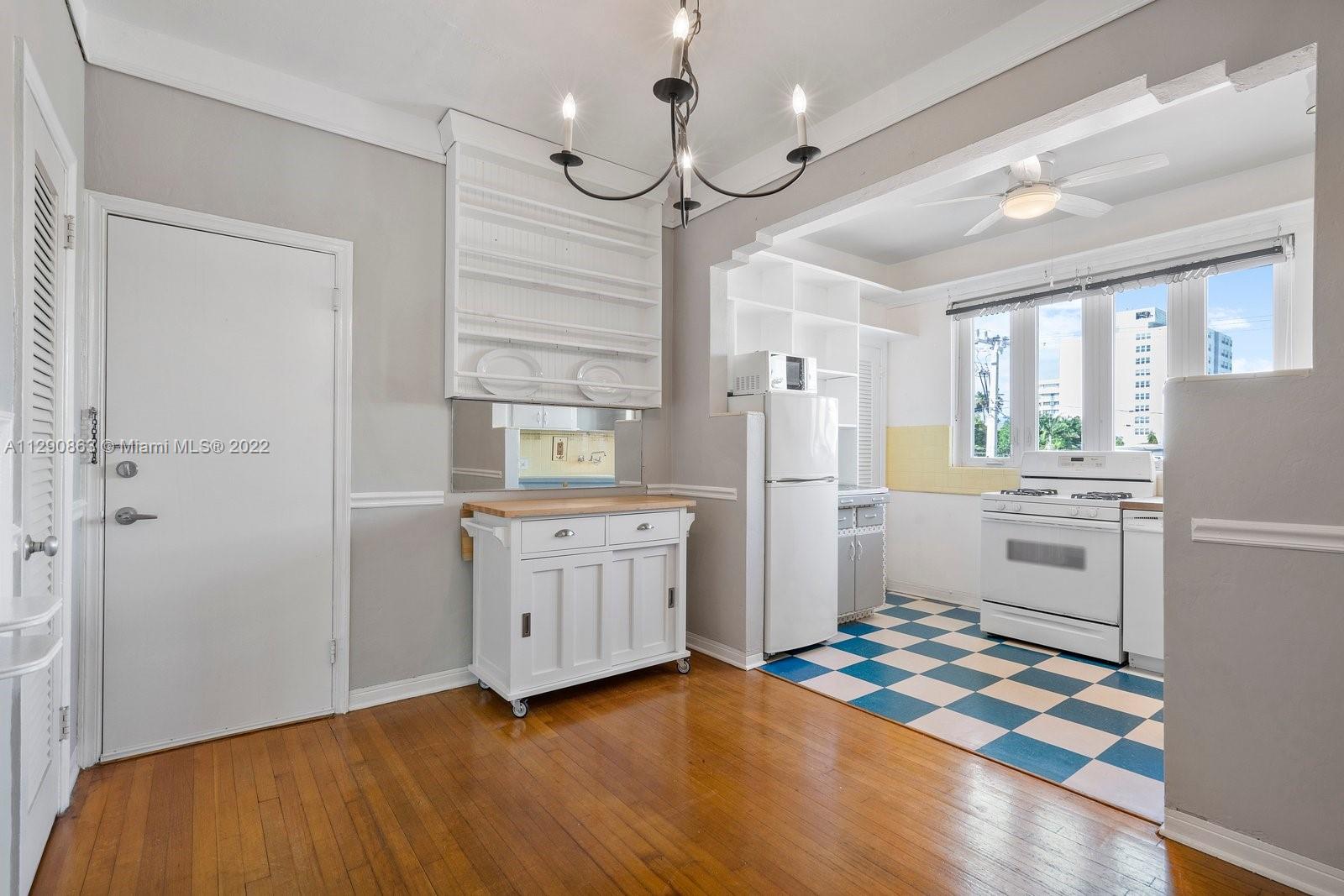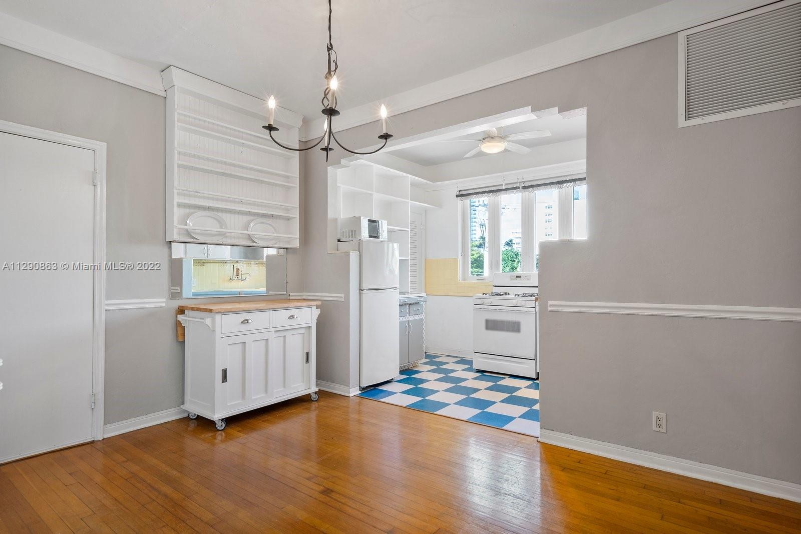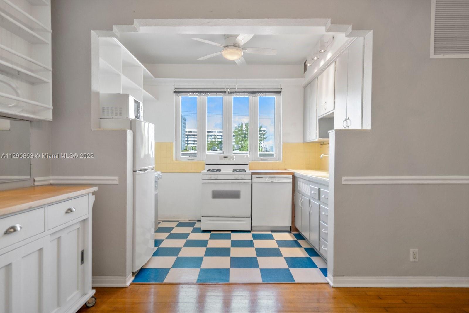 This mid-century deco building set back in lush, private garden was built by H.L Glasser. This charming spacious unit has treehouse views facing north and east, lots of natural light, 9 ft ceilings, red oak floors, gas fireplace & stove, 2 window side daybeds with one that pulls out into a queen bed, custom storage, built in bookcases & hurricane impact windows. This historic Art Deco building has 6 units and is well maintained by long term owners. Relax in the flourishing garden with BBQ-area. Building has a shared W/D plus W/D hook-up in the unit. A quiet neighborhood with just a short walk to Target, Publix and Whole Foods, Baptist Hospital’s Urgent Care Center and Archetectoninica’s new Canopy Park, 8 minute walk to the Beach & 15 minute walk to Lincoln Road.
