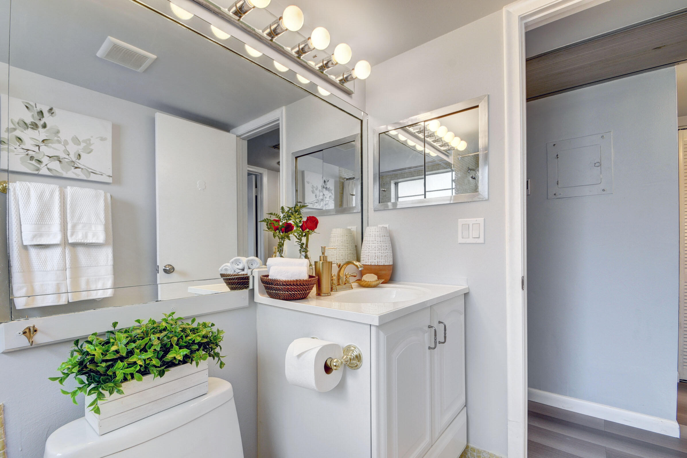 **2 DOGS ALLOWED UP TO 20 LBS EACH!** LOCATED IN THE DESIRABLE SHEFFIELD VILLAGE THIS BEAUTIFUL 2 BEDROOM 1 AND 1/2 BATHROOM SECOND FLOOR CORNER UNIT WITH CENTRAL AC IS A MUST SEE! FEATURING: RENOVATED KITCHEN WITH STAINLESS APPLIANCES, QUARTZ COUNTERTOPS WITH UNIQUE SUBWAY TILE BACKSPASH, LUXURY VINLY PLANK FLOORING, NEW ELECTRICAL PANEL AND LINES, FRESHLY PAINTED, NEW FANS, BLINDS AND VERTICALS. STEPS FROM THE HASTINGS FITNESS CENTER WHICH OFFERS: RESISTANCE POOL, SWIMMING POOL, A VARIETY OF CARIDO MACHINES AND WEIGHT TRAINING EQUIPMENT AS WELL AS VARIOUS CLASSES. THE MAIN CLUBHOUSE FEATURES: THEATER, SHOWS, MOVIES, HOBBY & CRAFT ROOMS, PARTY ROOM, BILLIARDS, LOCATED CLOSE TO SHOPPING, DINING, PBI AIRPORT, BRIGHTLINE, HOSPITALS, BEACHES, CITIPLACE, DOWNTOWN, TURNPIKE & I-95.