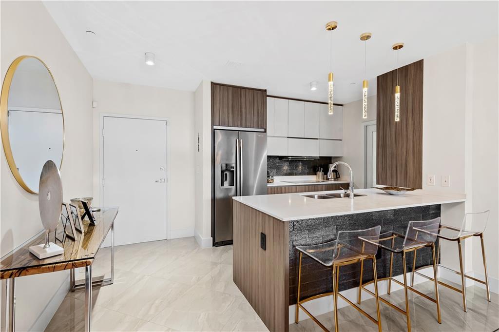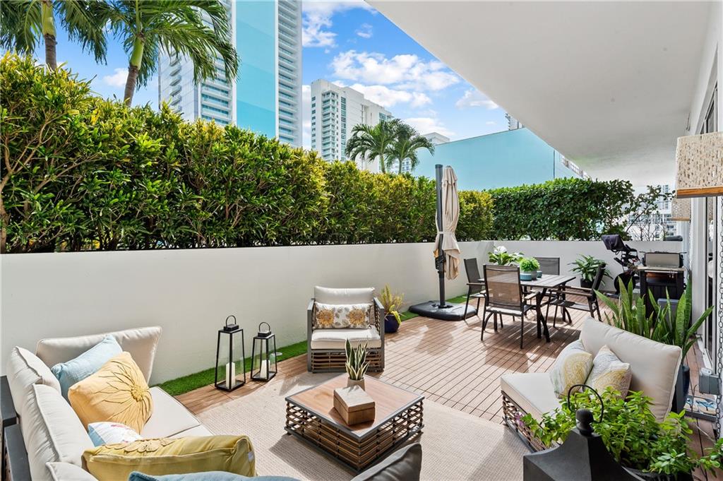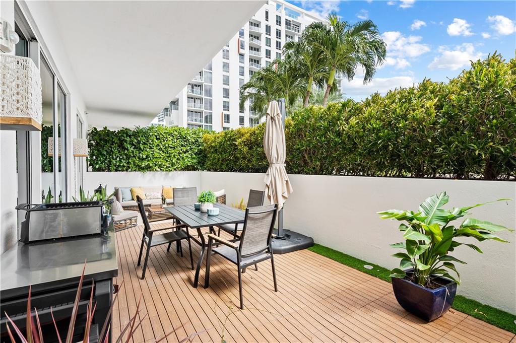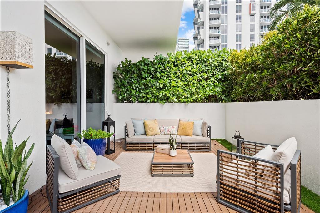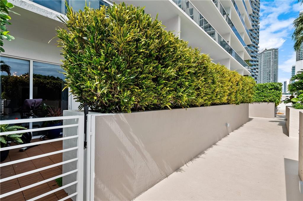 Welcome to the Terrace Residence at Bay House Miami, and Spoiler Alert! This unit has 2 Assigned Garage Parking Spaces! Absolutely LIT and perfectly placed along Edgewater's central waterfront, your designer home is 100% turnkey. A unique residence among the building's 165 units, featuring 12-foot ceilings and an almost 500 square foot private terrace with direct, gated access to the amenity deck, resort pool and hot tub. The split floor plan includes two well-sized rooms, each with en suite bathrooms and spacious walk-in closets. Curated finishes like the stunning light fixtures, natural cork wall coverings, iridescent kitchen backsplash, and warm furnishings combine for a seductive residence that should not be missed. – 3D Tour & Floor Plan are attached to this listing.