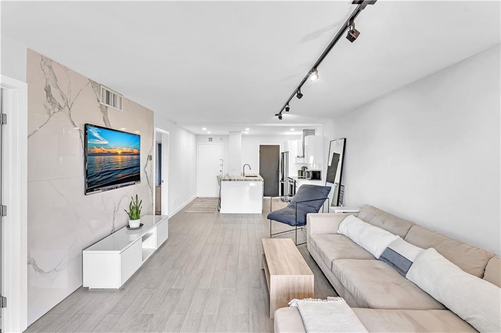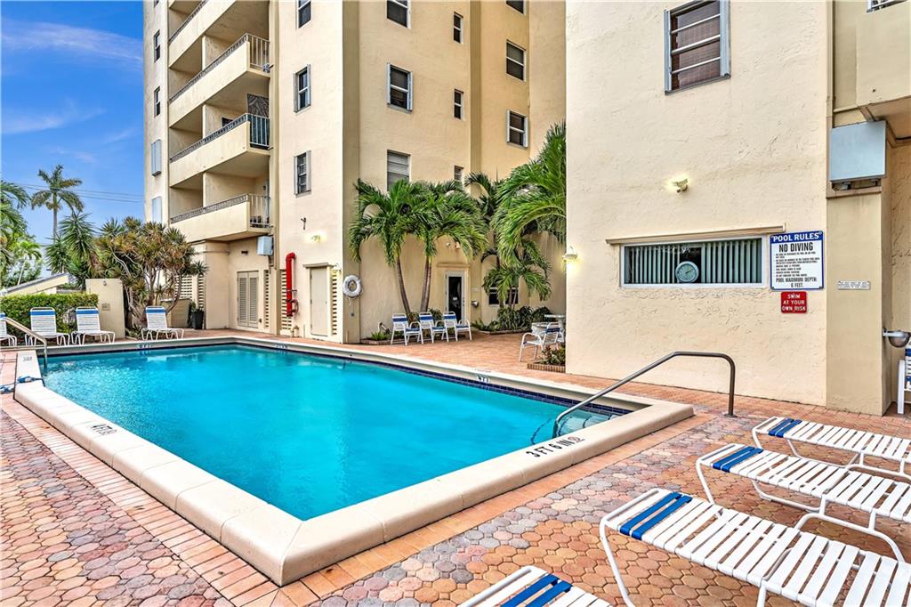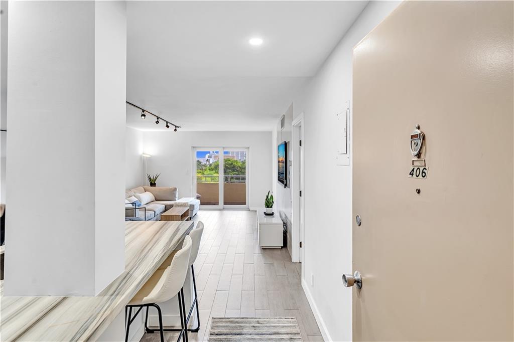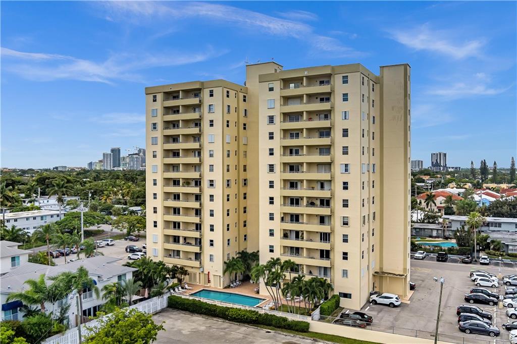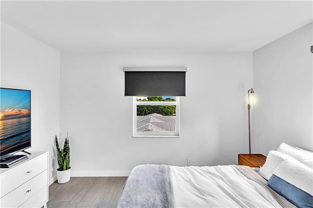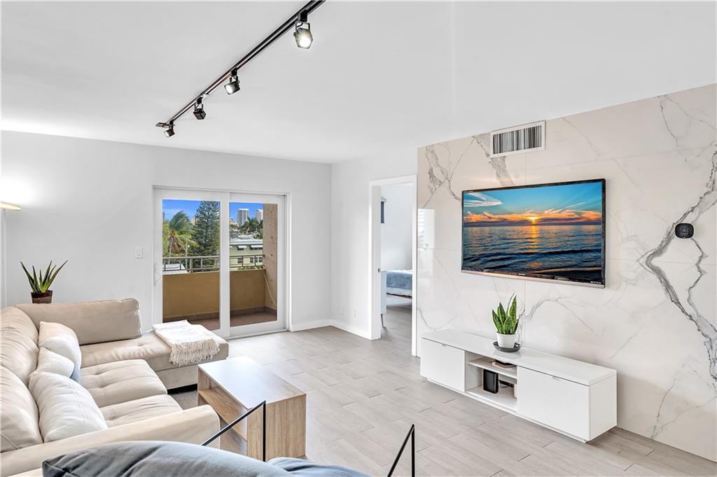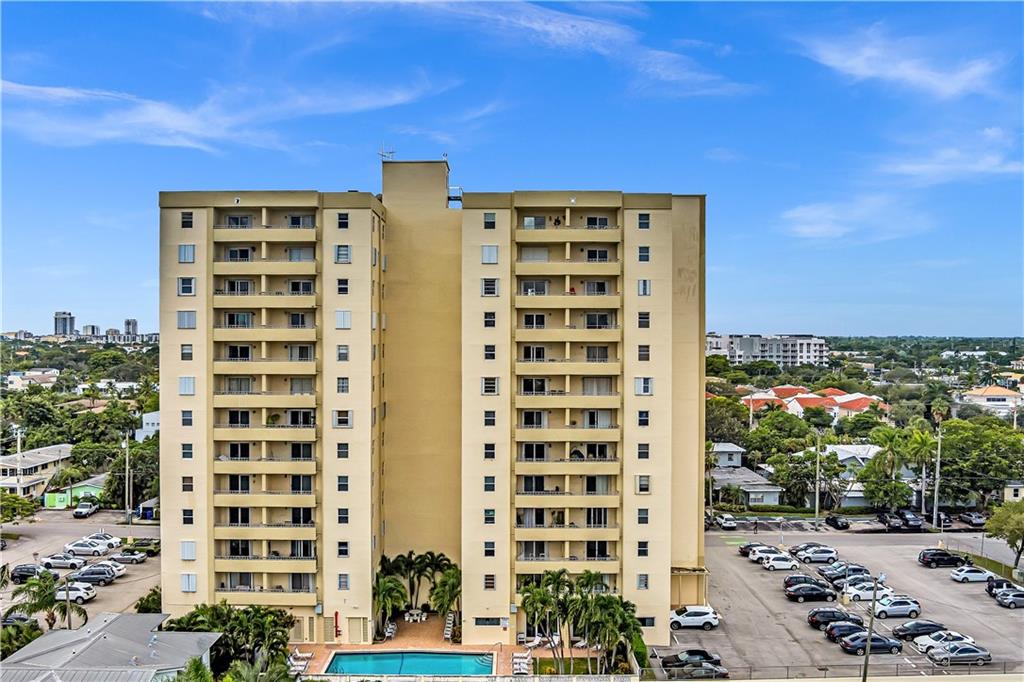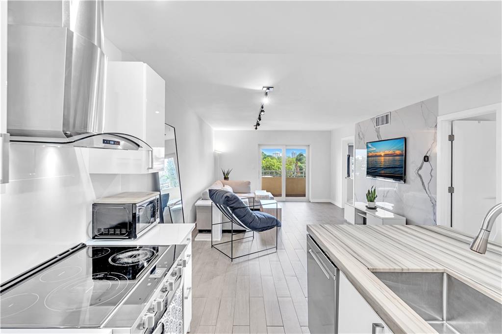 Stunning 2-bedroom, 1-bath fully renovated unit with high end finishes in desirable Victoria Park! Gorgeous kitchen opened to living area with marble and nano glass counters, snack bar, and stainless steel appliances. Porcelain tile wall feature is showpiece of your living room. Connected bathroom features a beautiful Blue Macauba mosaic tile in shower and marble counter. Impact windows and door. Sip on coffee and watch the sunrise on your open east-facing balcony overlooking the community pool. Association collects reserves. Minutes to Las Olas, beach, shopping, restaurants & more! Check out 3D Matterport tour & schedule your appt!