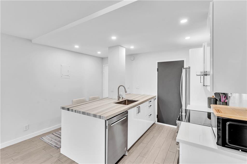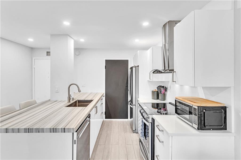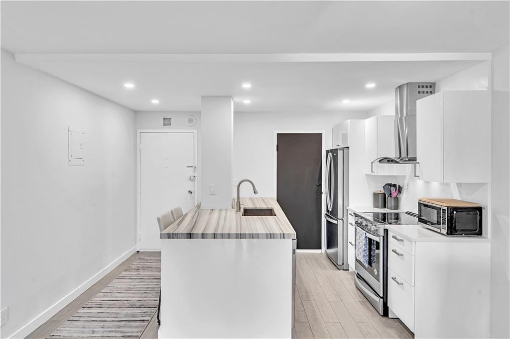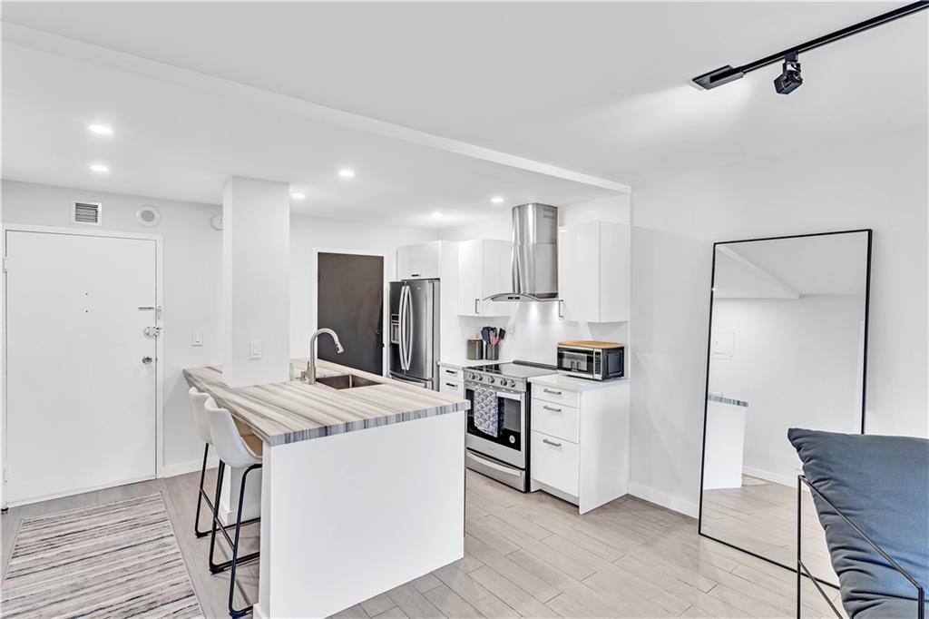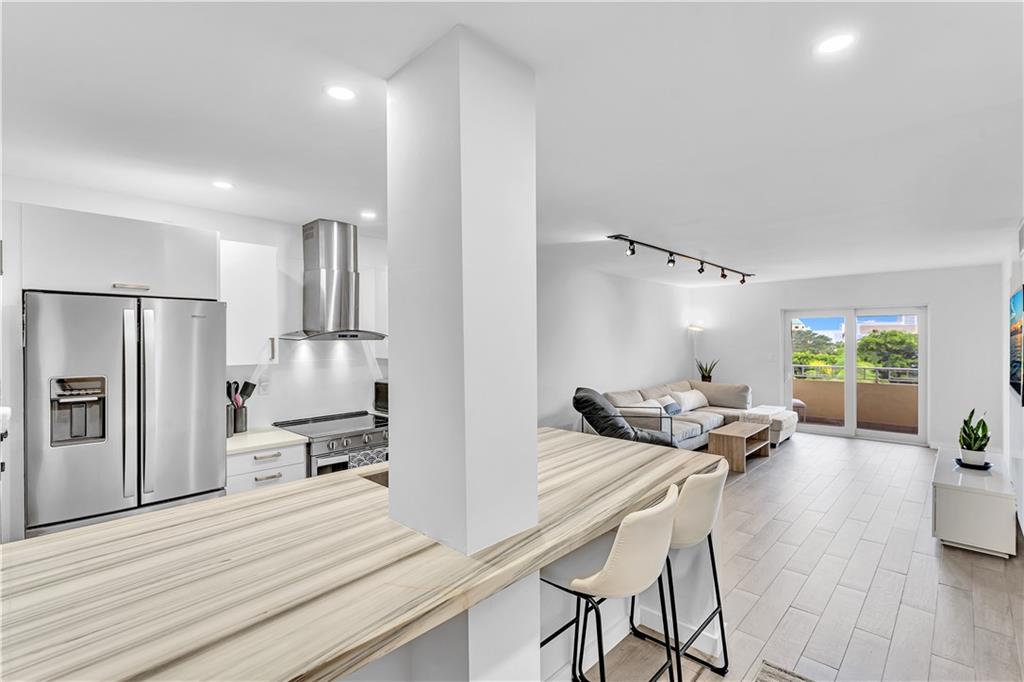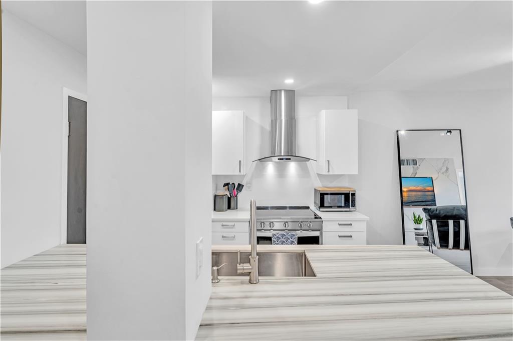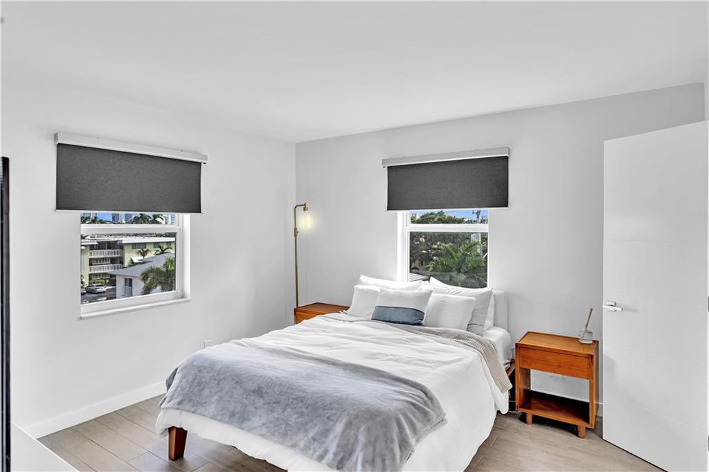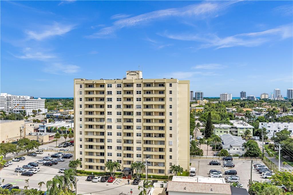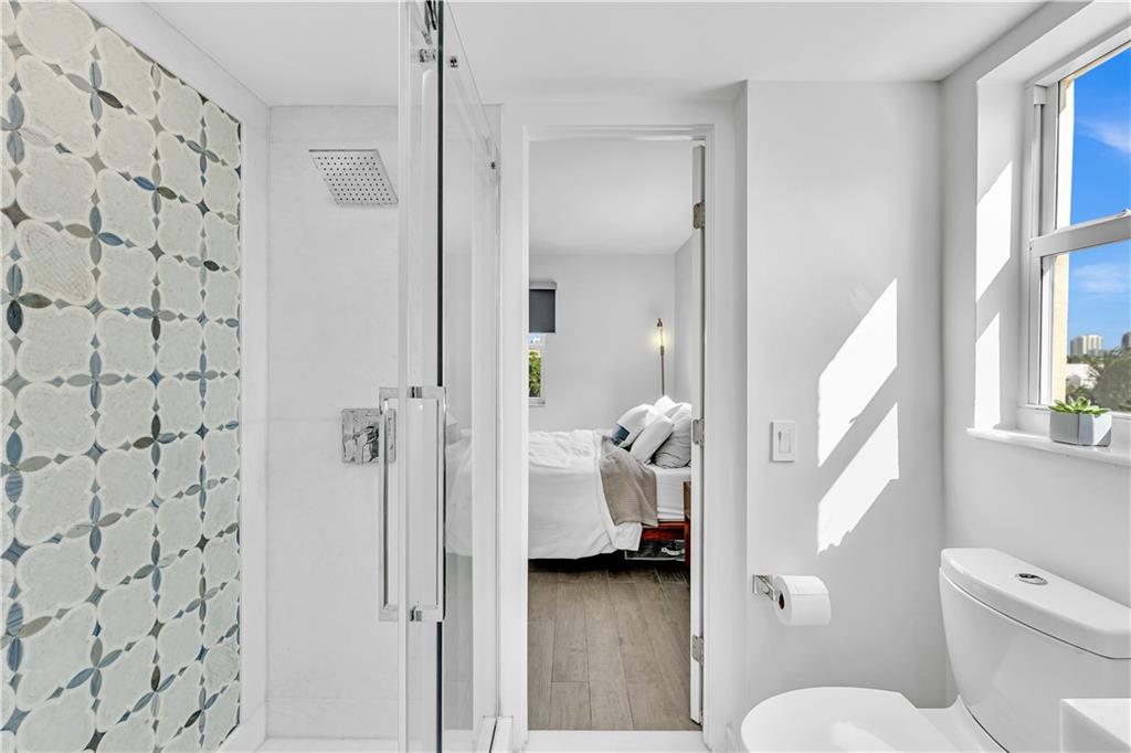 Stunning 2-bedroom, 1-bath fully renovated unit with high end finishes in desirable Victoria Park! Gorgeous kitchen opened to living area with marble and nano glass counters, snack bar, and stainless steel appliances. Porcelain tile wall feature is showpiece of your living room. Connected bathroom features a beautiful Blue Macauba mosaic tile in shower and marble counter. Impact windows and door. Sip on coffee and watch the sunrise on your open east-facing balcony overlooking the community pool. Association collects reserves. Minutes to Las Olas, beach, shopping, restaurants & more! Check out 3D Matterport tour & schedule your appt!