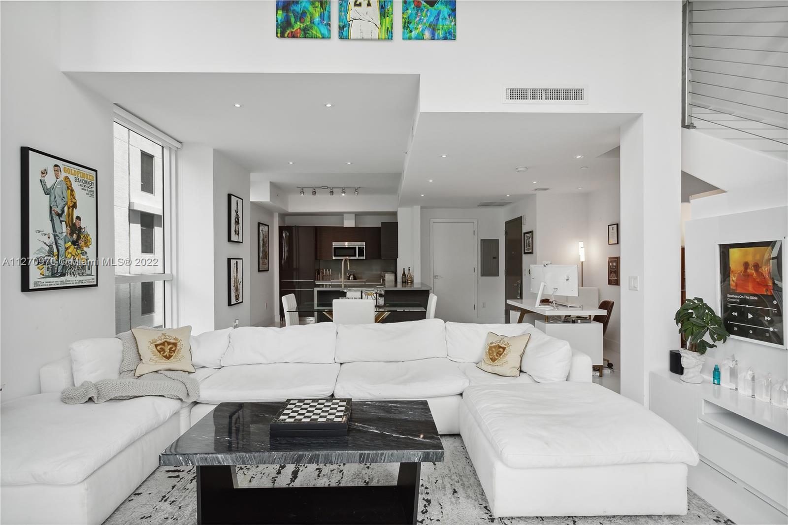 Loft Style Duplex at the Luxurious Bond on Brickell. Once walking in you are greeted by a radiance of natural light from this wide-ranging corner unit with 20ft ceilings overlooking the scenery of the city. This 1 Bed / 1.5 Bath unit features all new custom bathrooms wrapped in imported stone with Madeli cabinetry, gold fixtures and an infinity floor drain in master shower. The master walk in closet is built out in solid wood cabinetry and the entire unit has LED recessed light fixtures. The parking is located adjacent to the unit which avoids use of an elevator. Enjoy amenities featuring pool, jacuzzi, fitness center and spa. The Bond is centrally located within Brickell featuring walking distance top area restaurants, shops, Brickell City Centre and offices.