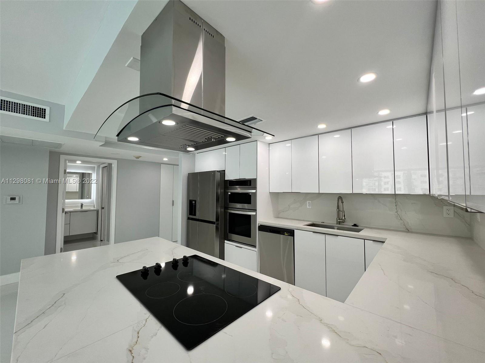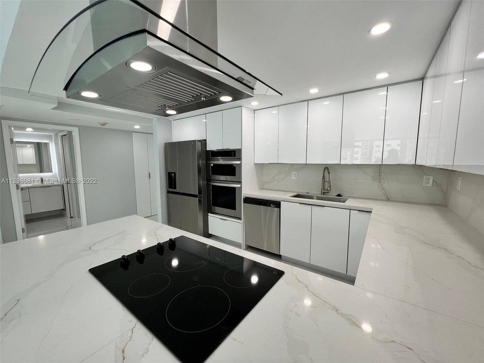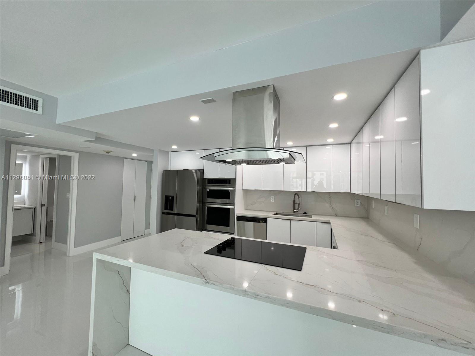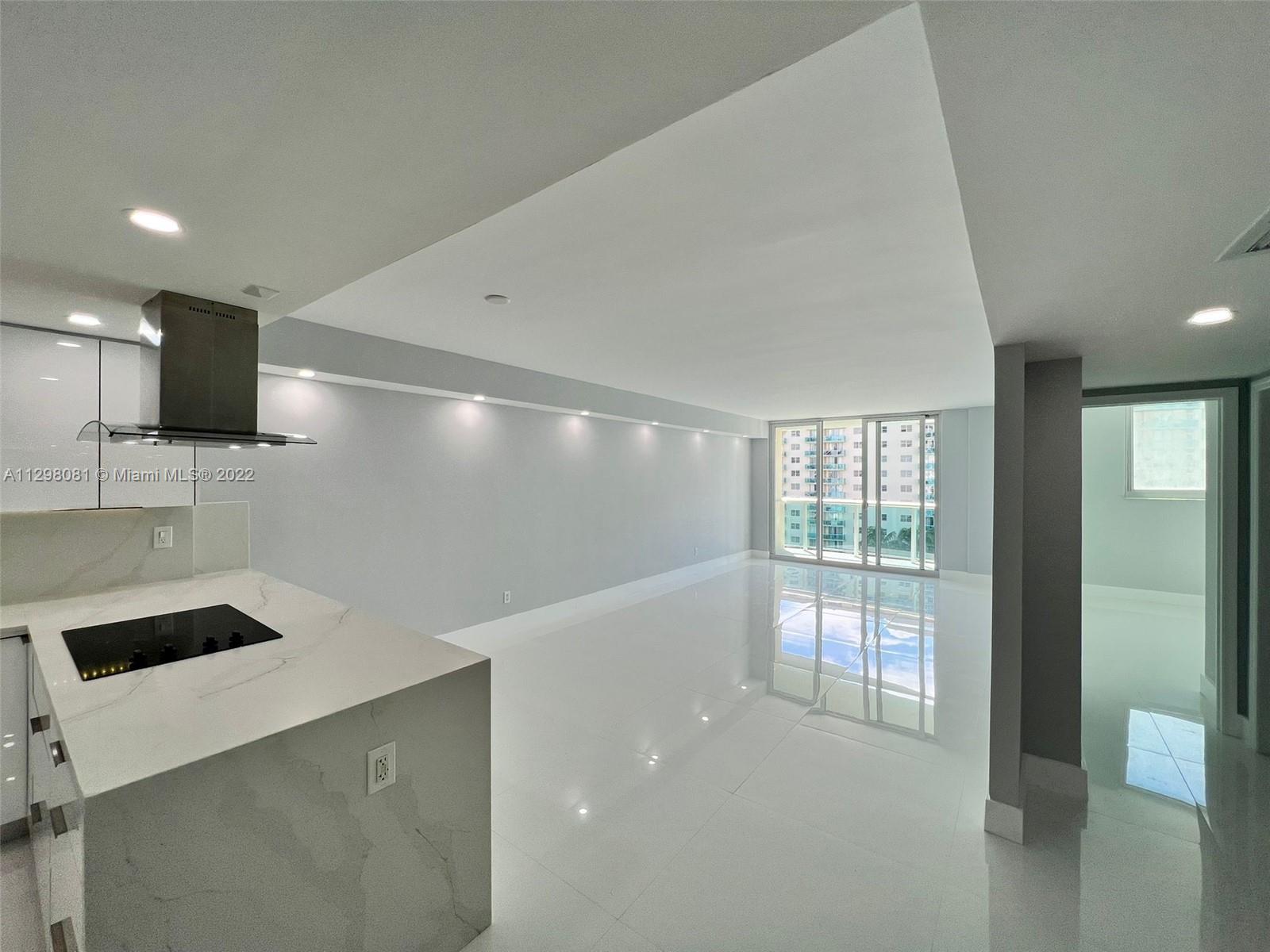 BRAND NEW CONTRUCTION!! Beautiful, completely renovated 2 bedroom 1 bathroom apartment. Alaskan white porcelain floors with marble shower, marble kitchen backsplash & marble L-shaped kitchen counter. New appliances throughout entire unit with hidden kitchen cabinet LED lighting & Living room Soffit lighting. Bathroom vanity mirror LED lighting with subdivision between vanity and shower in bathroom. 4 whole closets in entire apartment. (1 in each bedroom, 1 in bathroom, & 1 in entrance). Located in Sunny Isles with intercoastal views. For showings please call or text listing agents with 24 hr notice.