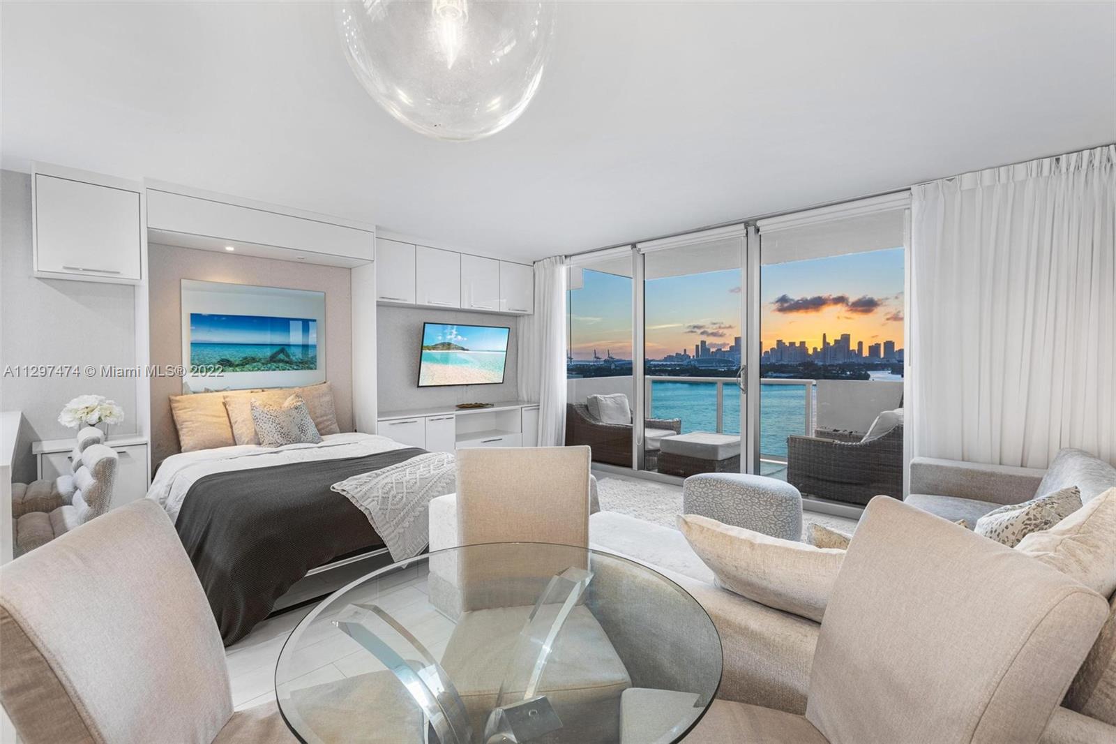 This stunning waterfront turnkey unit located in the heart of South Beach is fully renovated, furnished and ready for immediate occupancy. With direct views of Biscayne Bay, Star Island and the Downtown Skyline, this humble abode offers peace and tranquility by day and a glistening horizon by night. This thoughtful floorplan features a modern open kitchen, updated bathroom, in-unit washer & dryer, large walk-in closet, separate pantry, murphy bed, linen closet and hurricane impact windows. The Mirador boasts a resort style pool and huge gym with free classes for residents. Located on West Ave., home to Whole Foods and Trader Joe's, coffee shops and restaurants, everything is at your fingertips and within walking distance to Lincoln Rd. Valet parking available for an additional monthly fee.