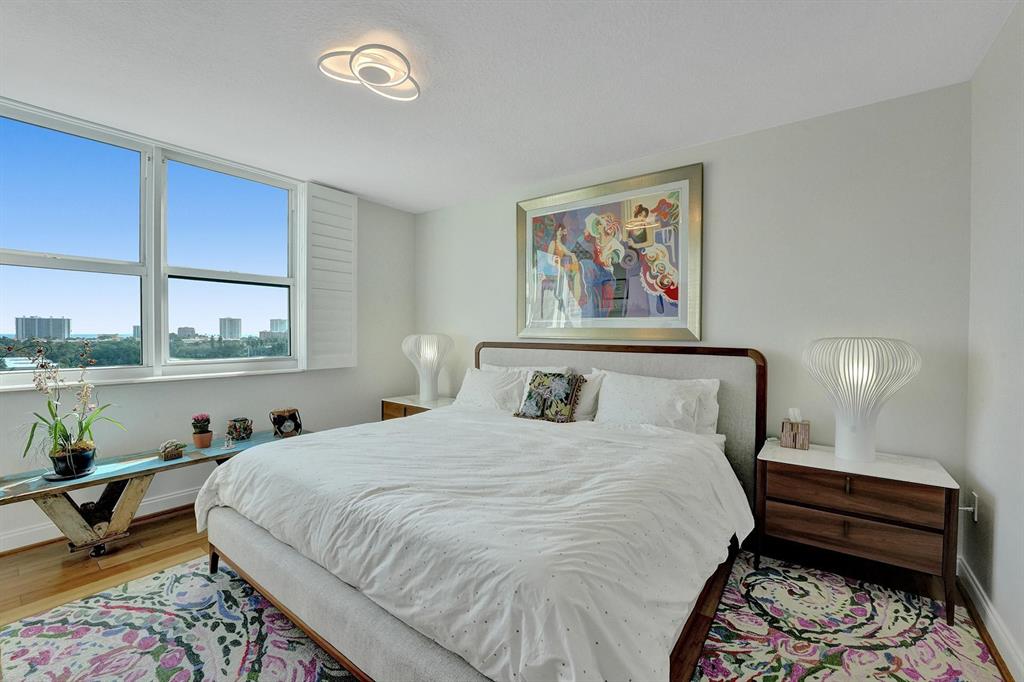 Exceptional 2 BR/2BA Pied a Terre located in East Boca Raton's hottest neighborhood offered at great value. Rarely available residence w/golf course & Ocean views on horizon. Walk out balconies offering East exposure & views of the Boca Raton golf course & Mizner Blvd & Alina residences to the South. This spacious condo has been renovated w/stunning new kitchen fit to entertain, new appliances, marble & wood floors, exceptional molding, plantation shutters & furnished w/custom high end furniture. Floor to ceiling windows in LV & 2nd Bedroom. Views from this 8th floor condo are unobstructed & property is offered FURNISHED and ready for you to enjoy as early as this winter season! Just steps away to Mizner Park, Royal Palm Plaza, pristine Beaches & world class golf and tennis... (see mor