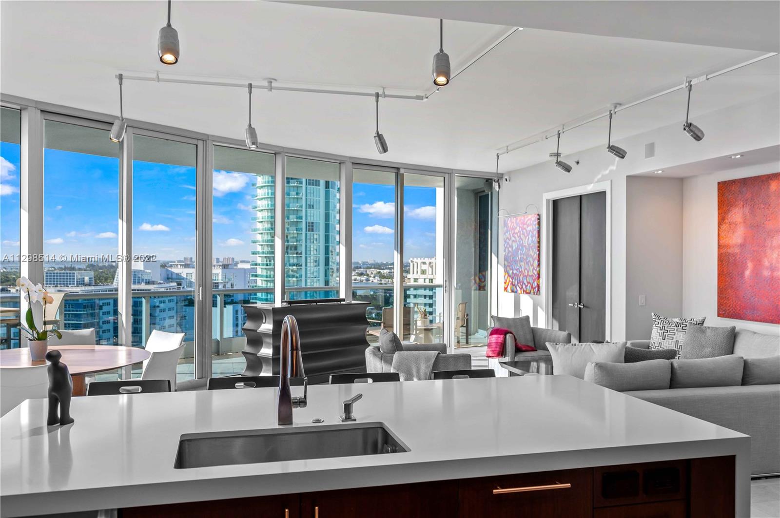 An absolute must see! Breathtaking & expansive water, city, & skyline views greet you upon entering this fully remodeled, turnkey furnished unit. No expense was spared. High up on the 17th flr, the view clears other buildings so the line of sight is endless. The price inclds the furniture & most of the artwork. All the closets are built out; there are 2 full master bathrooms, 1 full bath in the 2 nd bedroom, & a separate half bath. Private elevator foyer. All new appliances, incld an oversized wine cooler & washer/dryer in the laundry room. 5 star oceanfront resort living in a gated building w/ guardhouse, concierge, doormen, & valet parking. Pet friendly, pool, tennis courts, beach service, & a large fitness center (including Peloton stations) & spa.