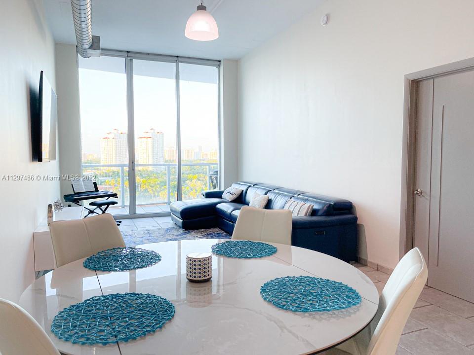 SPACIOUS LOFT PERFECTLY LOCATED IN THE HEART OF AVENTURA 11’ CEILINGS AND FLOOR TO CEILING HIGH IMPACT WINDOWS OFFERING SPECTACULAR WATER, SUNSET, AND CITY VIEWS FROM THE 10TH FLOOR. THIS 3 BEDROOM AND 2 BATH 1362 SQ FT RESIDENCE FEATURES 2 TERRACES ACCESSIBLE BY EVERY BEDROOM AND LIVING ROOM! EXPOSED CONCRETE CEILINGS, ITALIAN TILE FLOORS. RECENT UPGRADES INCLUDE INDUCTION COOKTOP, 3 DOOR REFRIGERATOR, LG STACKED LAUNDRY CENTER, NEW MIRRORS AND LIGHTING IN THE MASTER, AND FRESH PAINT. THE BUILDING OFFERS A FULL RANGE OF AMENITIES: HEATED POOL, HOT TUB, FITNESS CENTER, SAUNA, STEAM ROOM, MASSAGE ROOMS, TENNIS COURT, BASKETBALL COURT, BUSINESS CENTER, LOUNGE, VALET, 24 HOUR SECURITY & PRIVATE MARINA. PET FRIENDLY BUILDING, BASIC CABLE AND HIGH SPEED INTERNET INCLUDED IN THE MAINTENANCE.