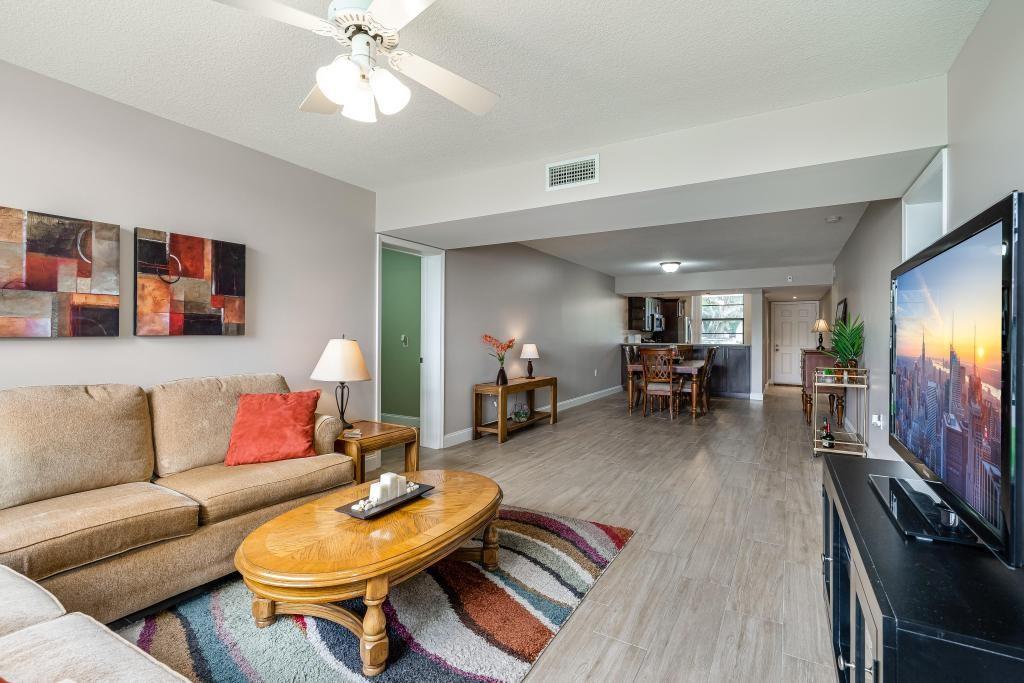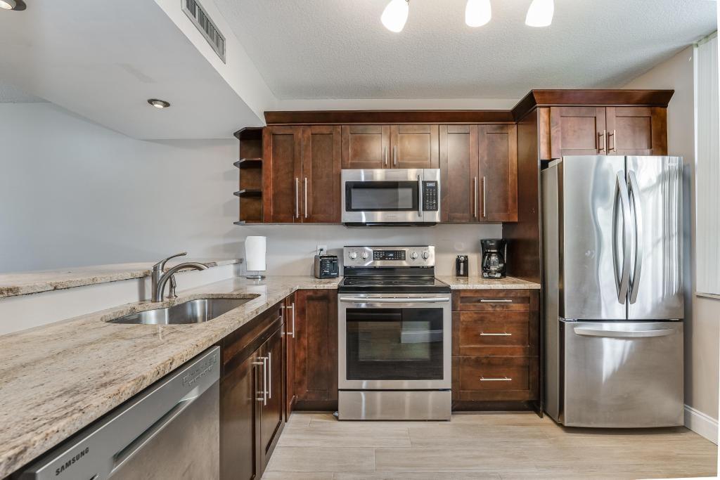 Substantially updated, move-in ready south Florida jewel! Convenient first floor entry, 2 bedrooms, 2 FULL baths, modern flooring, gorgeous baths, beautifully updated kitchen, complete with granite counters and stainless appliances. IMPACT WINDOWS, A/C 2016, roof approximately 2015. Open floor plan, light and bright with breathtaking WATER VIEW! Full size laundry room IN UNIT. Membership in country club INCLUDED in association dues. Plenty of guest parking, community pool, minutes from popular shopping, and major highways. TOP RATED SCHOOLS.