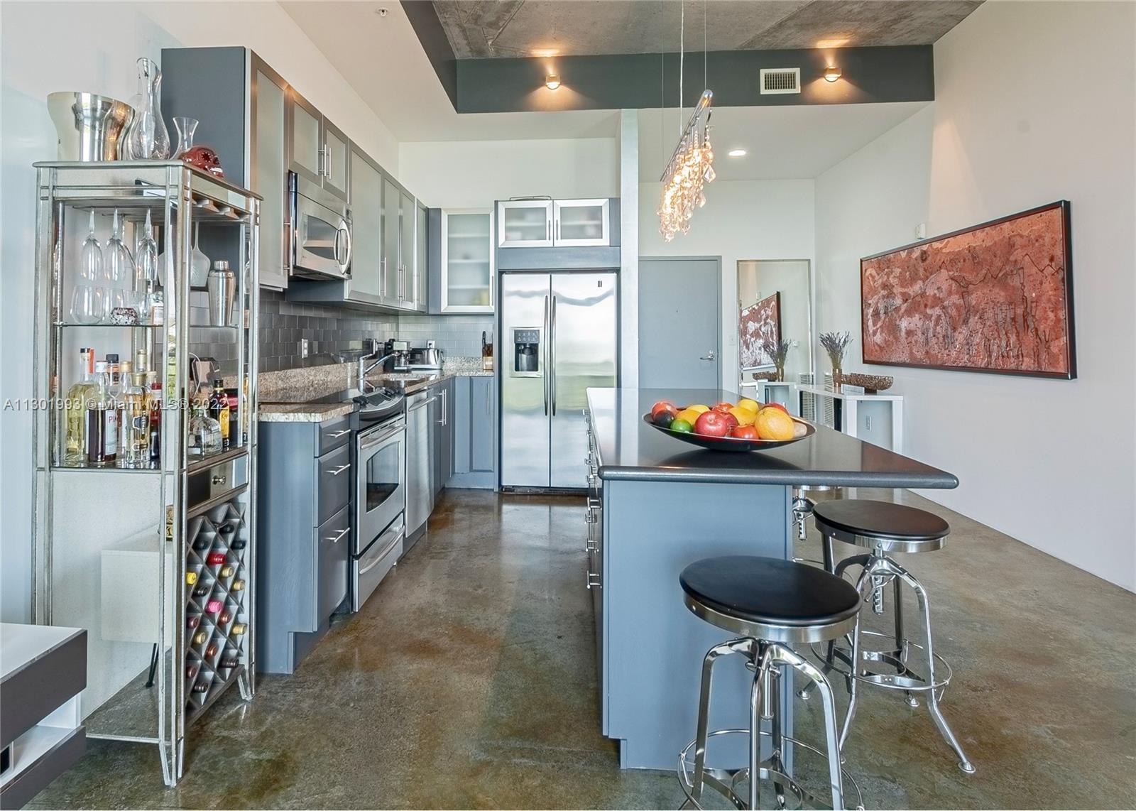 Unique 2 bed 2.5 bath 5th floor modern Loft style unit on the best side of the boutique Meridian Condo. Outstanding sunset views across the golf course and beyond to Downtown Miami. Designer interior with stunning concrete floors and an oversized kitchen and living area. Spacious 1450 sq ft of living area. The Meridian is located in the most sought after area of SoBe, close to all the action ( Lincoln Rd, Sunset Harbour, Beach etc ) but an oasis of calm. Walk across to the golf course. Exclusive rooftop pool & jacuzzi, great gym, 24 hr security, secure entry system, private car parking spot. Hurricane Fortress. Move-in ready. Furniture negotiable.
