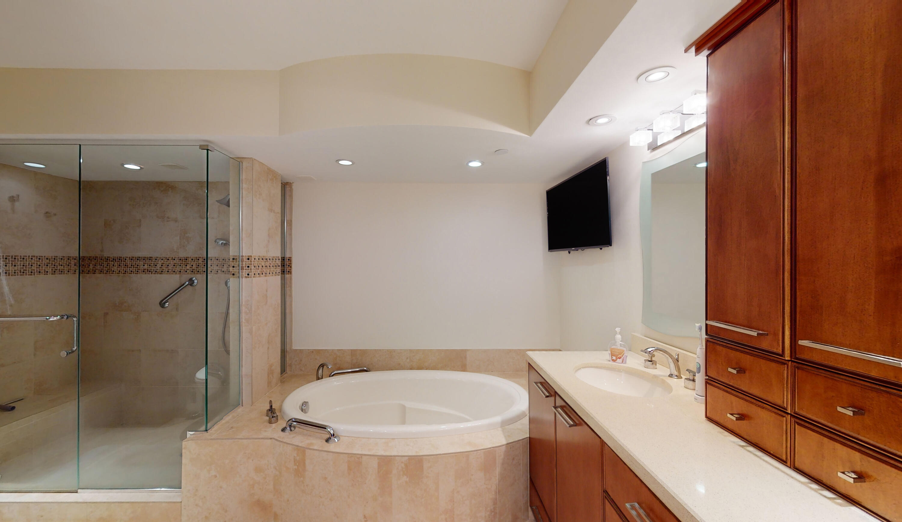 BEAUTIFULLY UPDATED IN CLASSIC DESIGN, WRAPAROUND CORNER 3 BEDROOM WITH MANY CUSTOM FEATURES. NEUTRAL TILE FLOORS IN LIVING AREAS, CUSTOM DESIGNED KITCHEN THAT OPENS TO LIVING ROOM. WRAPAROUND CORNER BALCONY WITH FLOOR TO CEILING SLIDING IMPACT DOORS AFFORDS BREATHTAKING VIEWS OF THE LAKE, OCEAN AND CITY BOTH DAY AND NIGHT. CAMBRIA KITCHEN WITH CUSTOM FEATURES, ADJOINING UTILITY ROOM AND STORAGE PANTRY. GREAT MASTER SUITE WITH DOUBLE WALK IN CLOSETS AND SPA LIKE BATH AND PRIVATE WATERVIEW BALCONY. IN ADDITION TO 3 BEDROOMS THERE IS A CUSTOM FITTED OFFICE COMPLETE WITH DESK AND FILE STORAGE. LOTS OF BEAUTIFUL CUSTOM FEATURES FOR YOUR IMMEDIATE ENJOYMENT. BUILDING HAS JUST COMPLETED EXTERIOR RESTORATION, NEW POOL DECK AND UPDATED LOBBY. CLOSE TO BEACH AND NEXT DOOR TO WATERSTONE HOTEL.