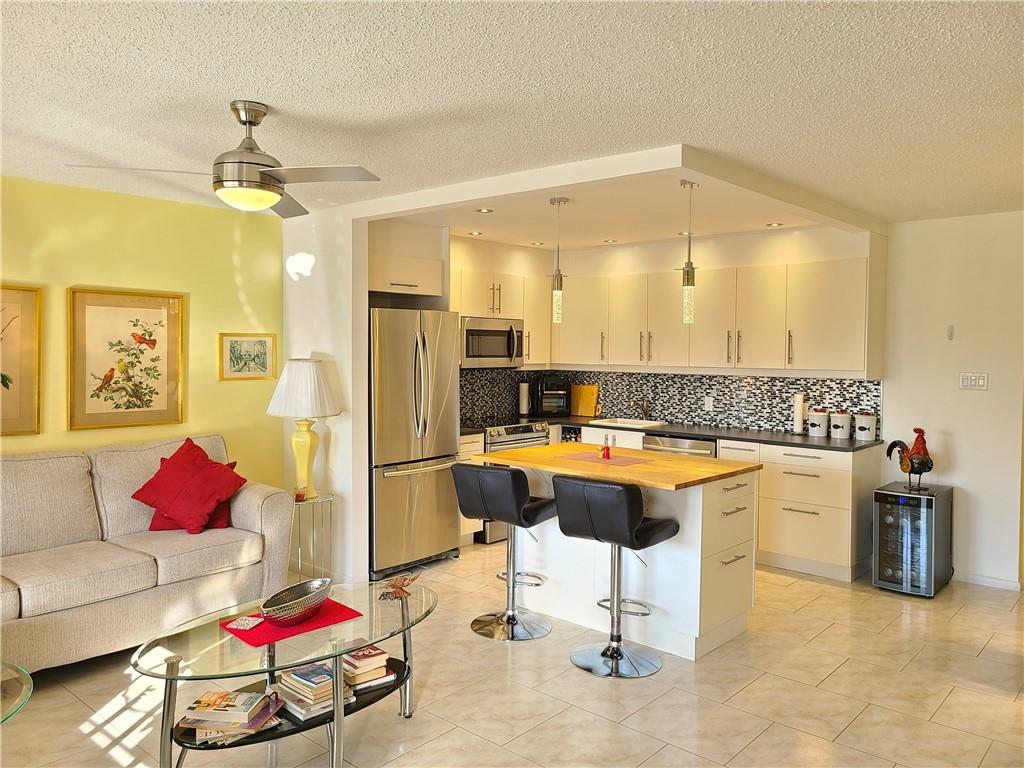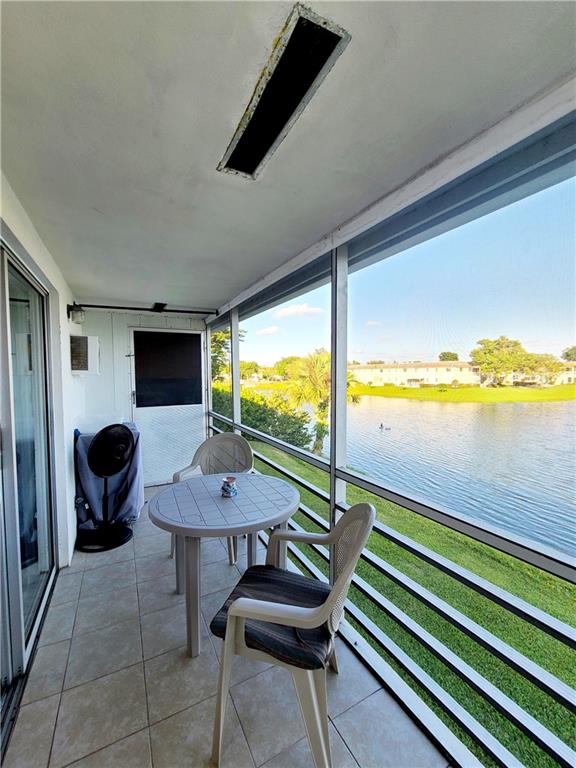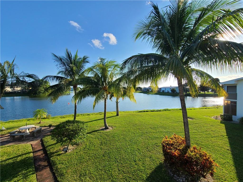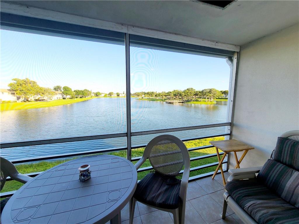Stunning completely updated 1 bedroom, 1.5 bathroom 2nd floor condo with a spectacular water view. Updated open kitchen, white cabinets. Tile backsplash. Stainless appliances. Recess lighting. Tile flooring throughout. New furniture. Fully furnished ready to move in. Sofa bed in the living room. Water heater & appliances 2015 extremely well maintained. New living room wall A/C unit 2021. Updated bathrooms. Perfect sun exposure to entertain friend & family or have a romantic dinner on your private screen patio overlooking a relaxing lake view. Great building well maintained, offers 2 eating & gathering area by the water. New aluminum railings. Lift for easy access to the 2nd floor. Welcome to Century Village active 55+ 24/7 gated community. Minutes to shopping & restaurants. MUST SEE!